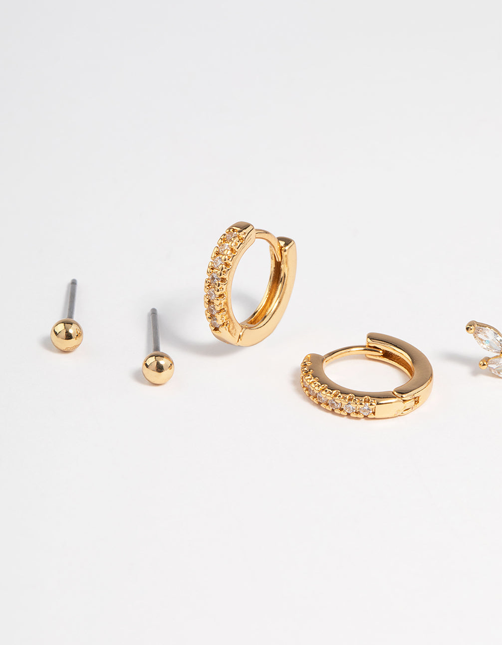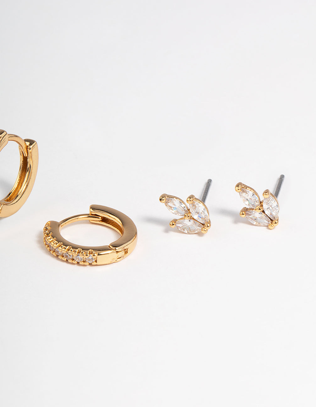 Gold Plated Cubic Zirconia Leaf Earrings 3-Pack