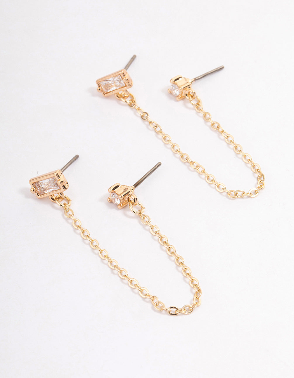 Gold Plated Cubic Zirconia Round & Baguette Chain Earrings