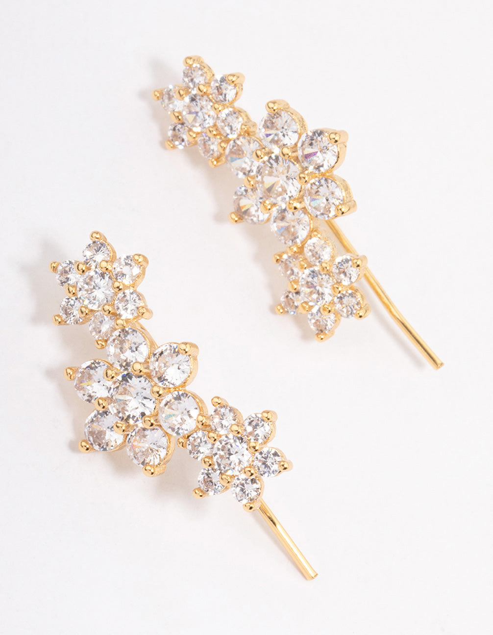 Gold Plated Cubic Zirconia Triple Flower Cuff Earrings