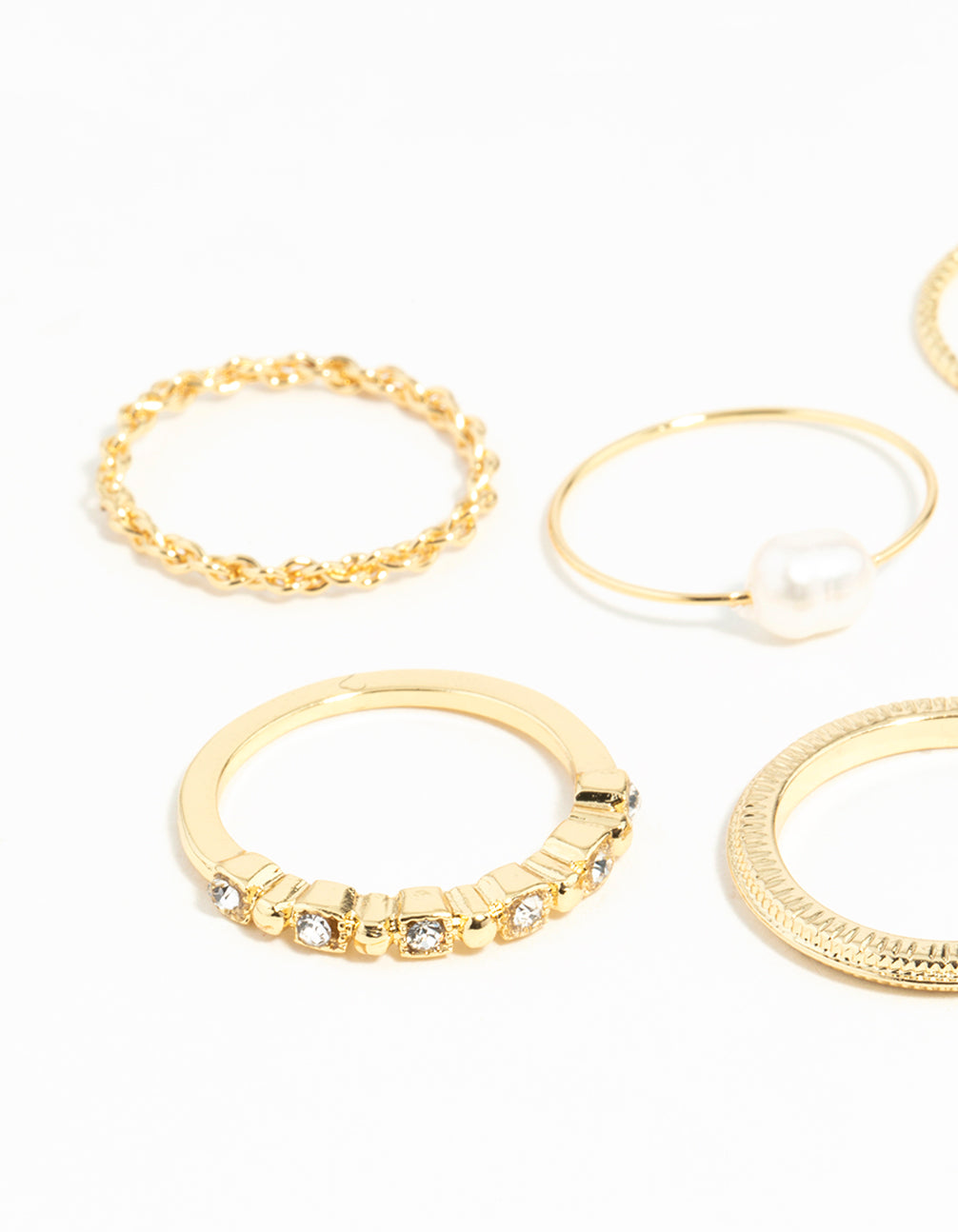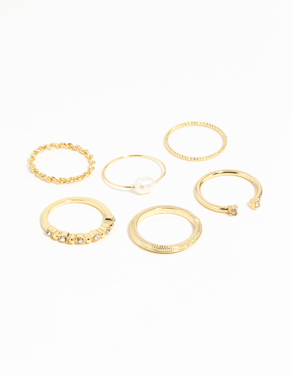 Gold Plated Ring Stack Pack with Freshwater Pearls Gold Plated Ring Stack Pack with Freshwater Pearls Gold Plated Ring Stack Pack with Freshwater Pearls