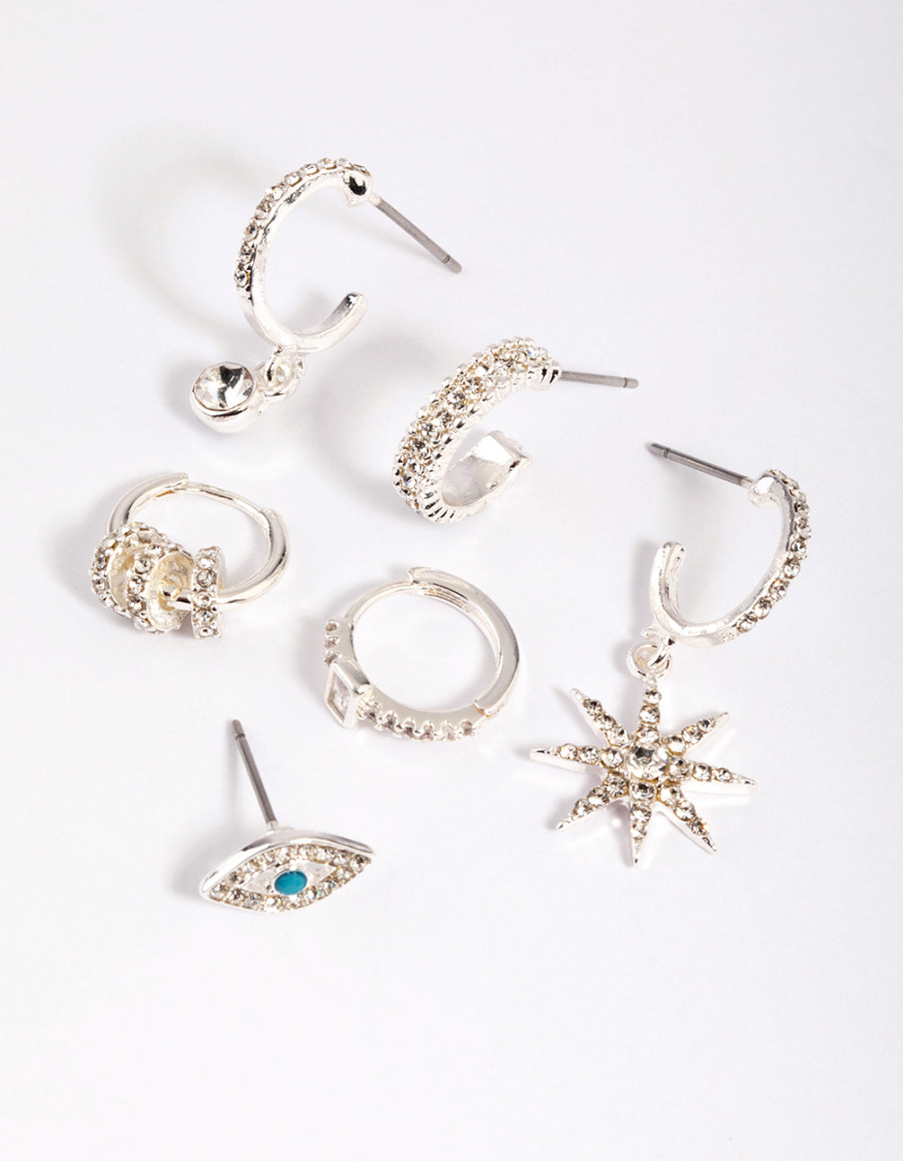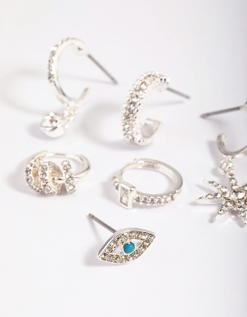 SIlver Plated Evil Eye & Star Earring Stack Pack