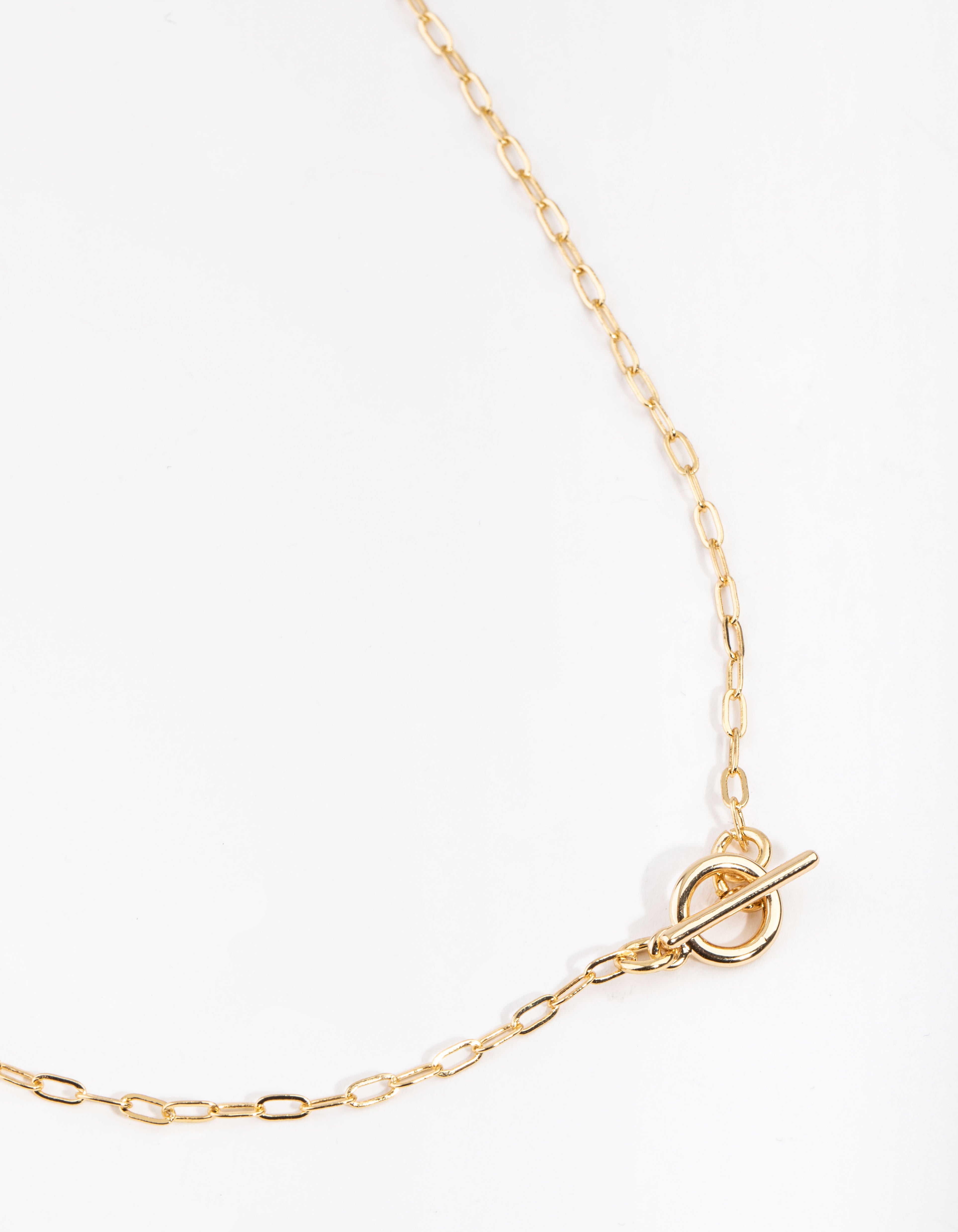 Real Gold Plated Thin Chain T&O Bar Necklace
