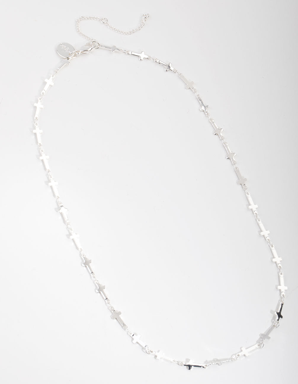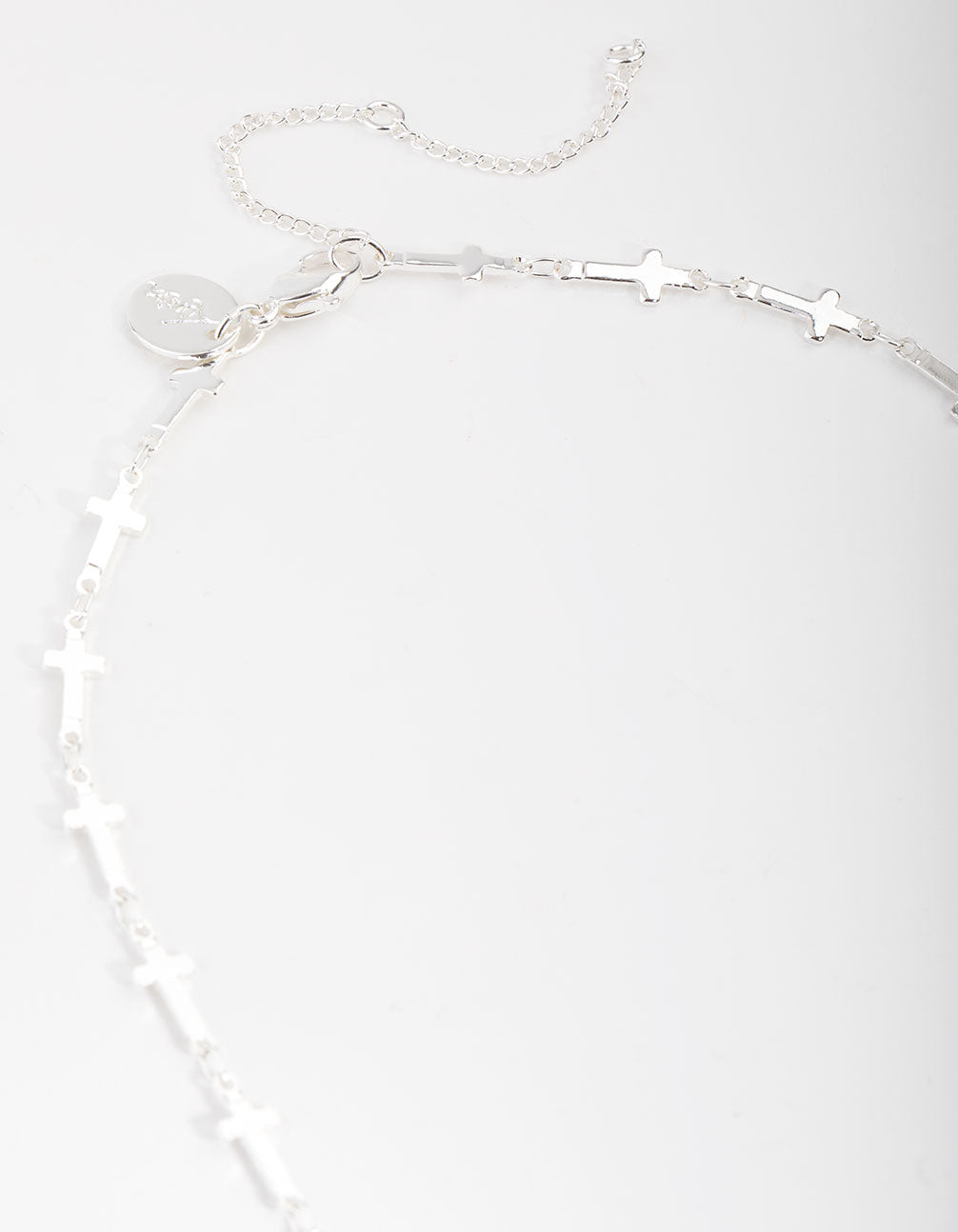Silver Plated Cross Station Necklace Silver Plated Cross Station Necklace Silver Plated Cross Station Necklace