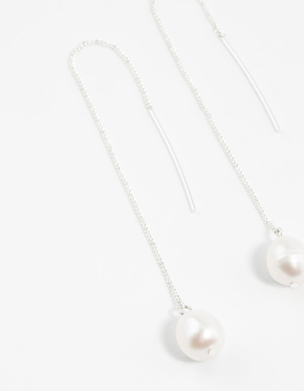 Silver Plated Freshwater Pearl Thread Through Earrings