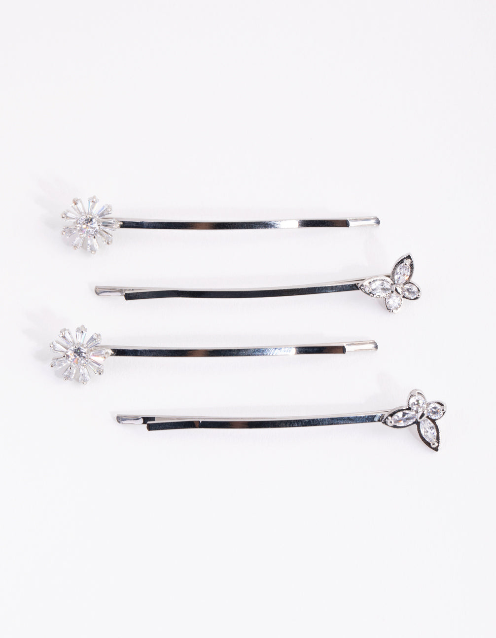 Silver Cubic Zirconia Flower & Butterfly 4-Pack Clip