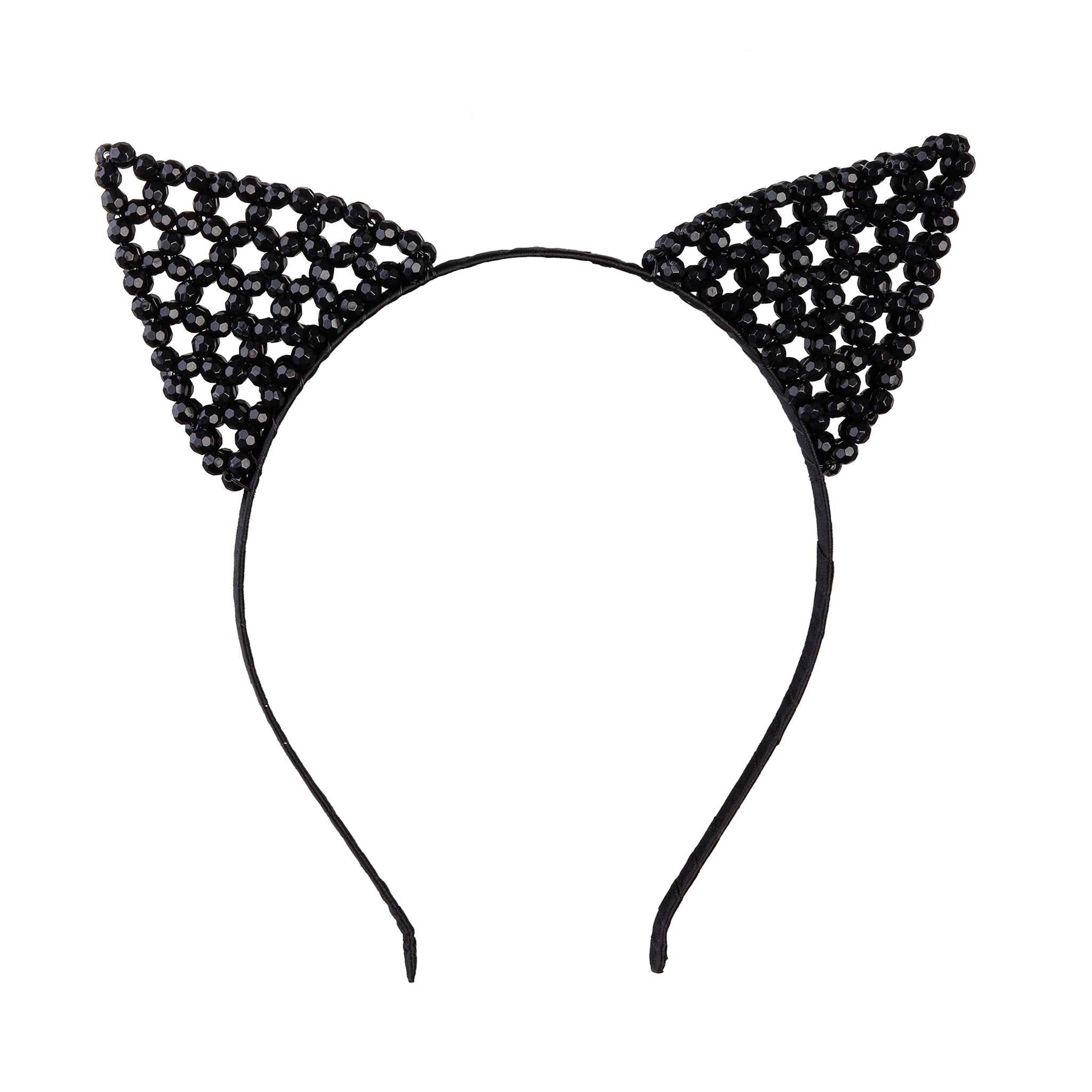 Go wild with this black beaded headband. This piece adds a playful twist on traditional design.