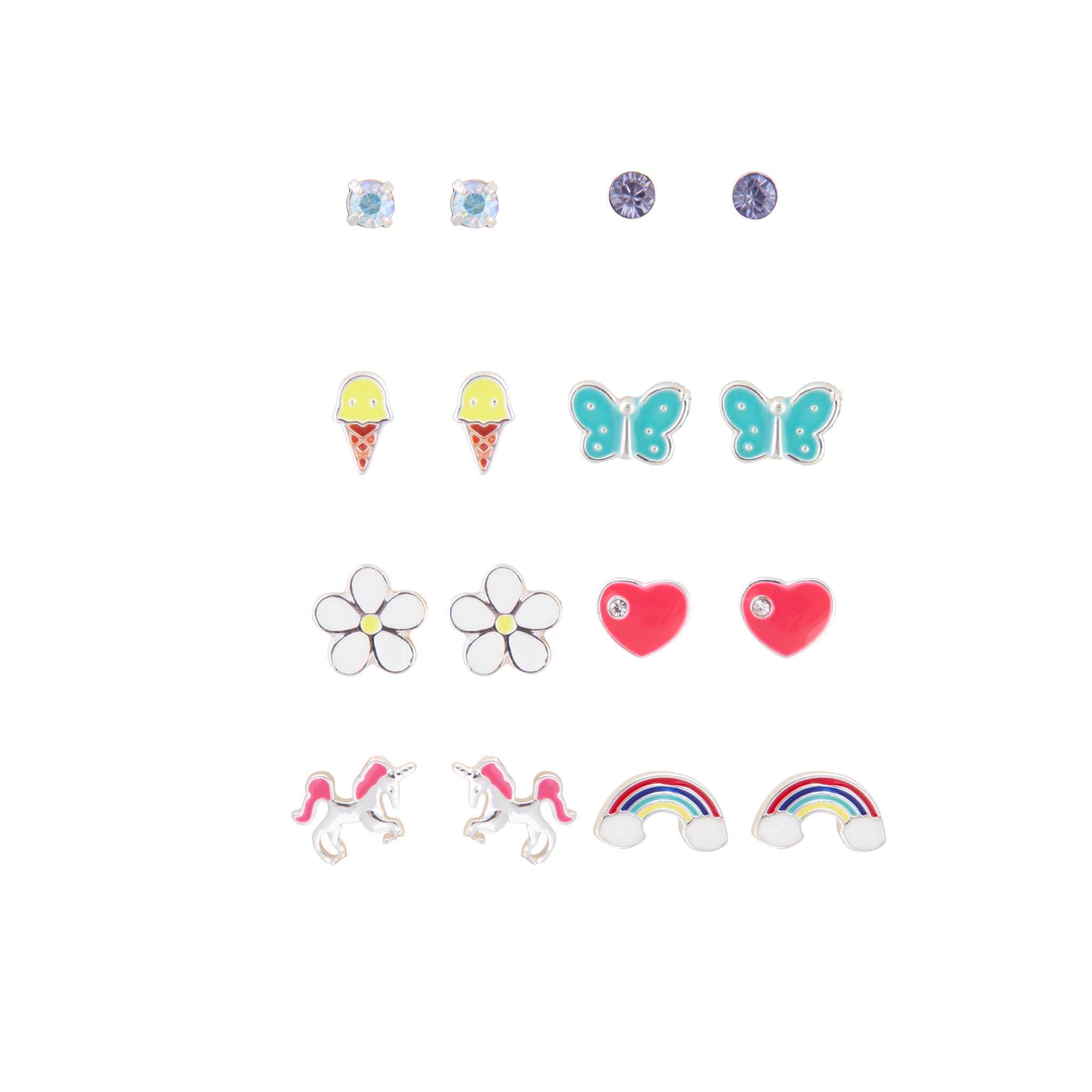 Kids 8-Pack Unicorn Rainbow Stud Earrings