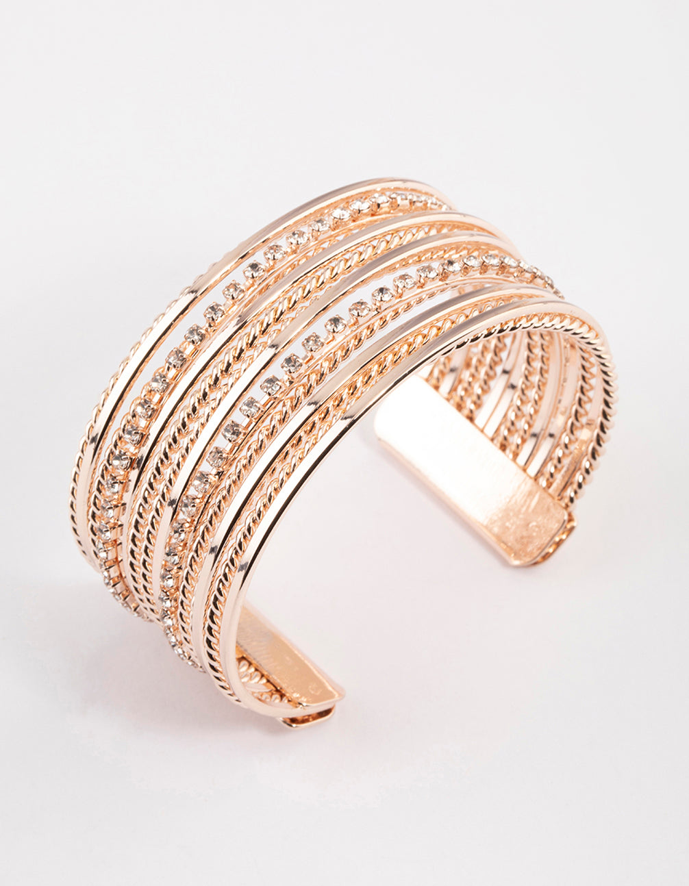 - This Rose Gold Multi Row Diamante Wrist Cuff features multiple rows of sparkling diamantes, creating a multi-dimensional, stand-out effect.