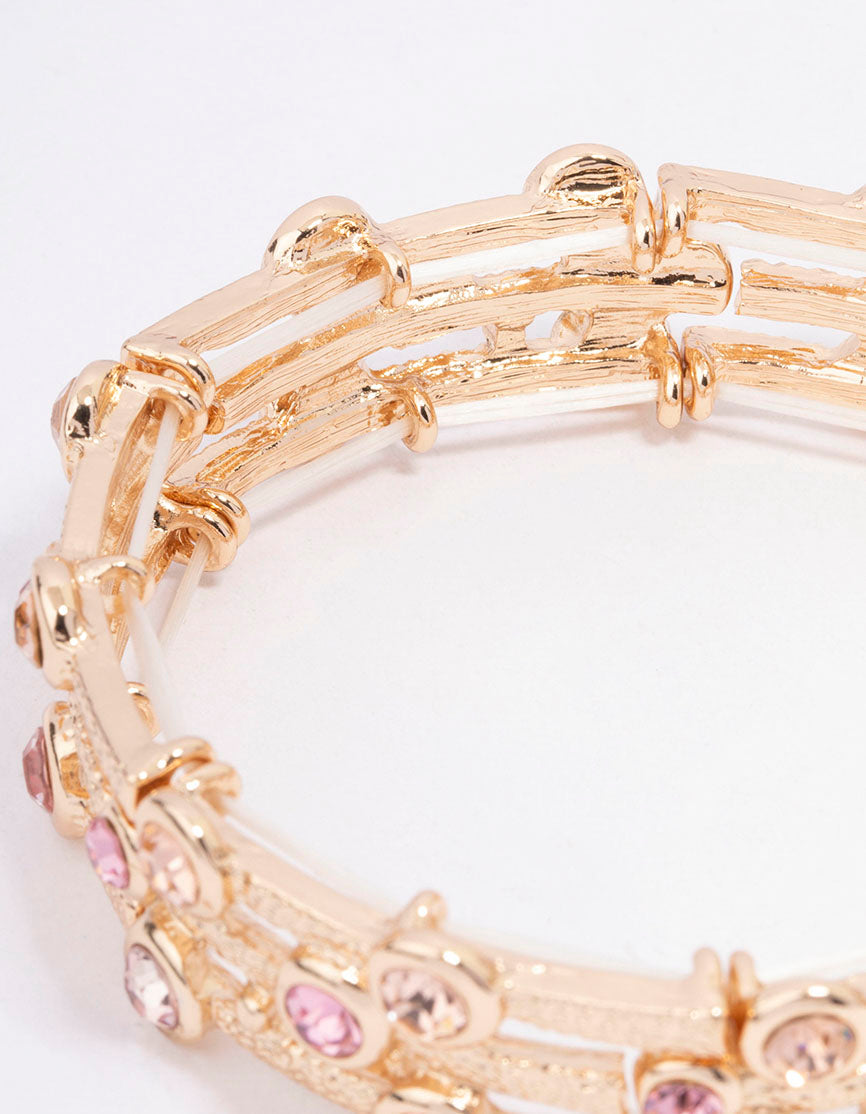 Gold Textured Diamante Bangle