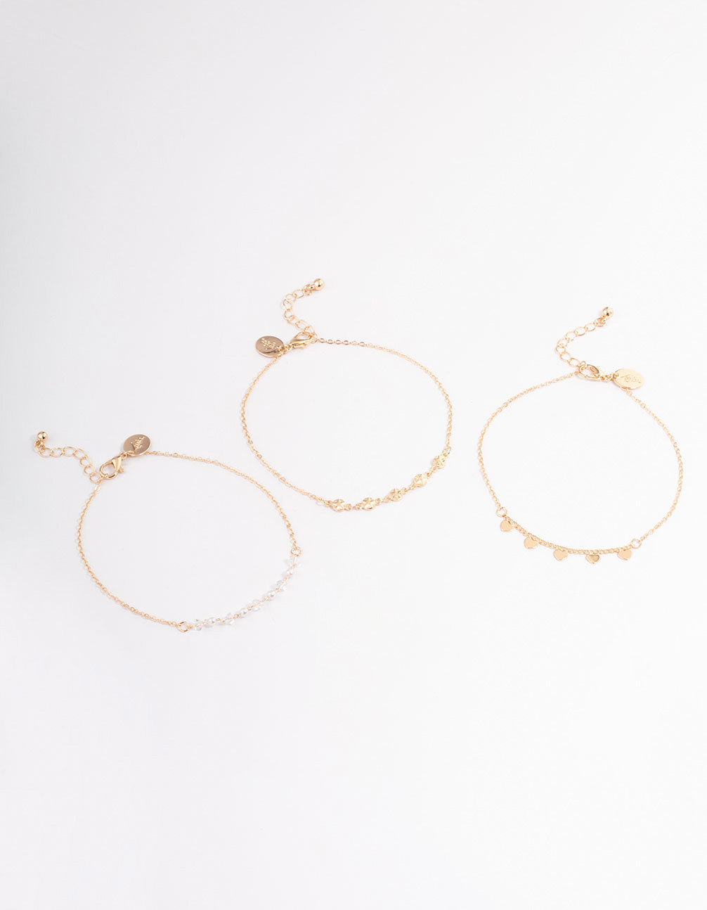 - This anklet pack contains three individual anklets and features heart, pearl and star embellishments.