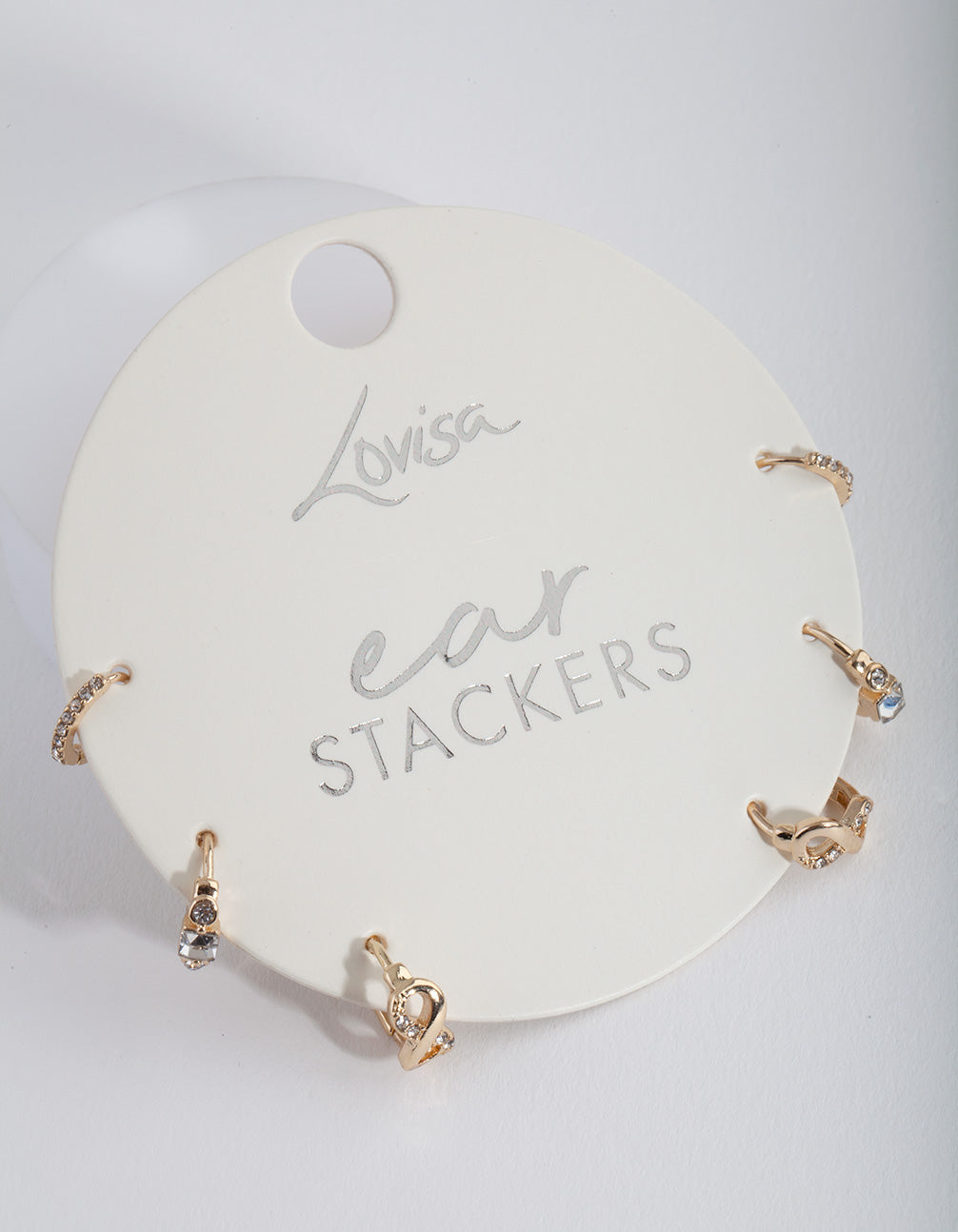We've made stacking easy with our stack packs. This pack features a gold-toned huggie hoop design with diamante embellishments.