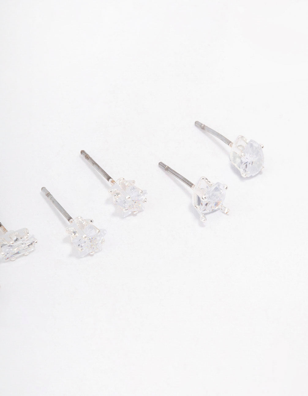 Silver Cubic Zirconia Mixed Shape Stud Earrings 3-Pack