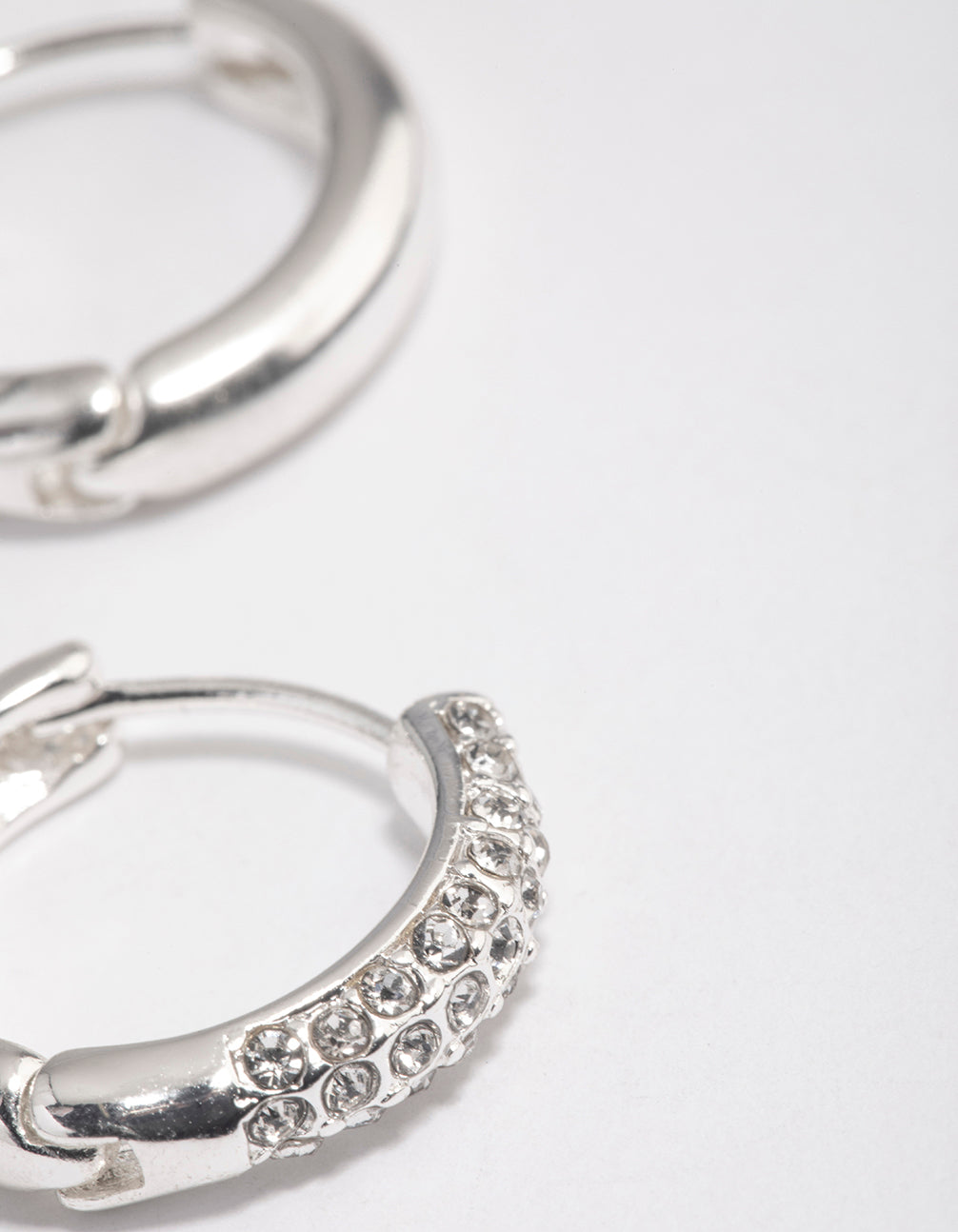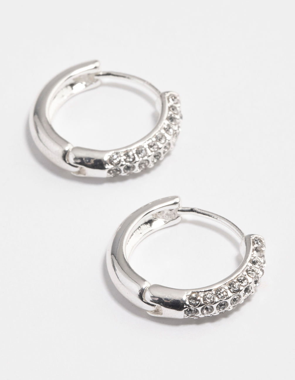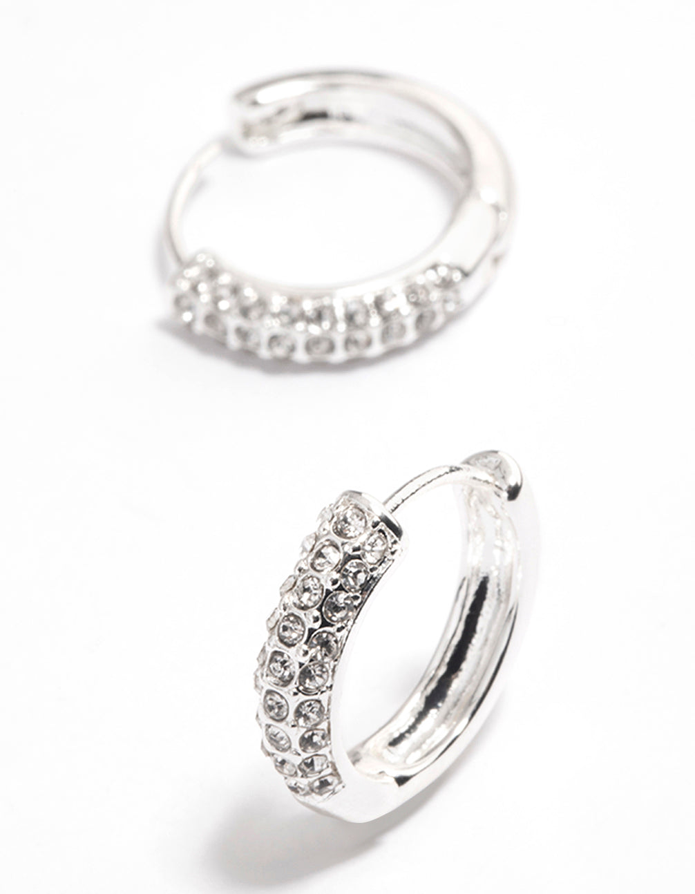Silver Diamante Thick Huggie Earrings
