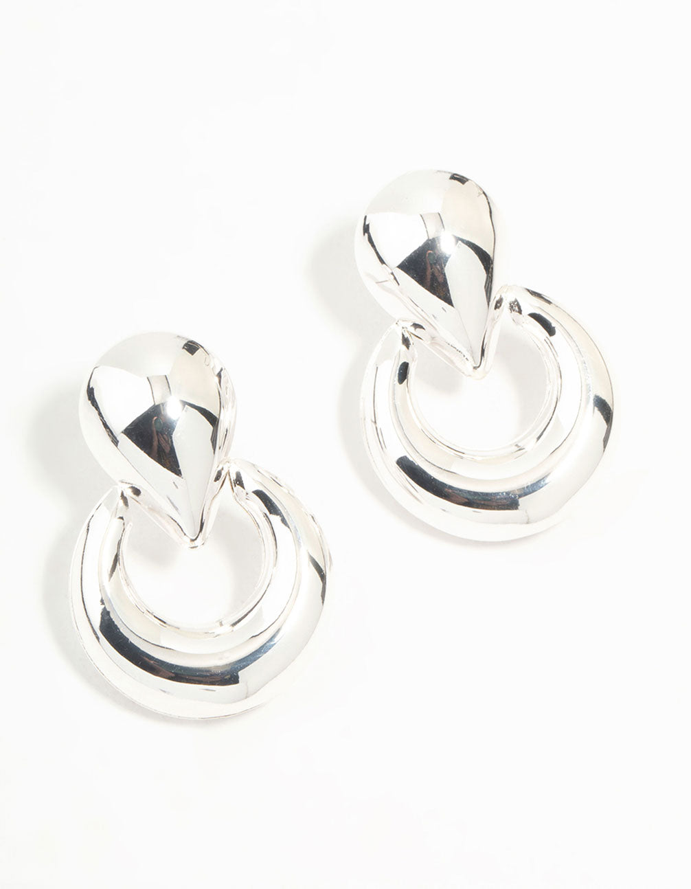 Upgrade your style with these modern silver doorknocker stud earrings. Perfect for both casual and formal looks.