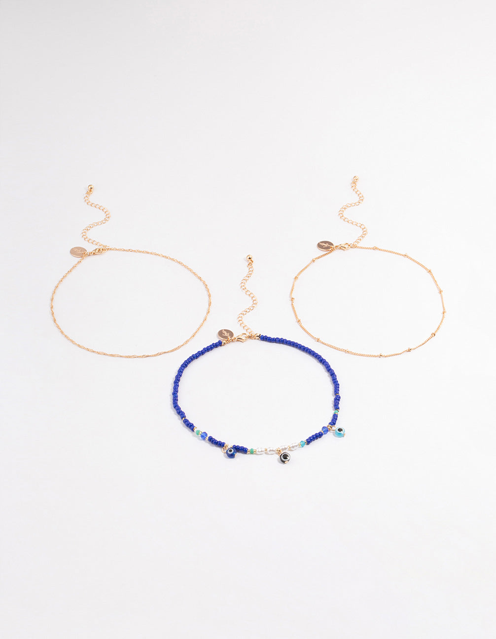 - Style this Gold Evil Eye Multi-Row Choker Necklace for the ultimate 'it-girl on vacation' look.