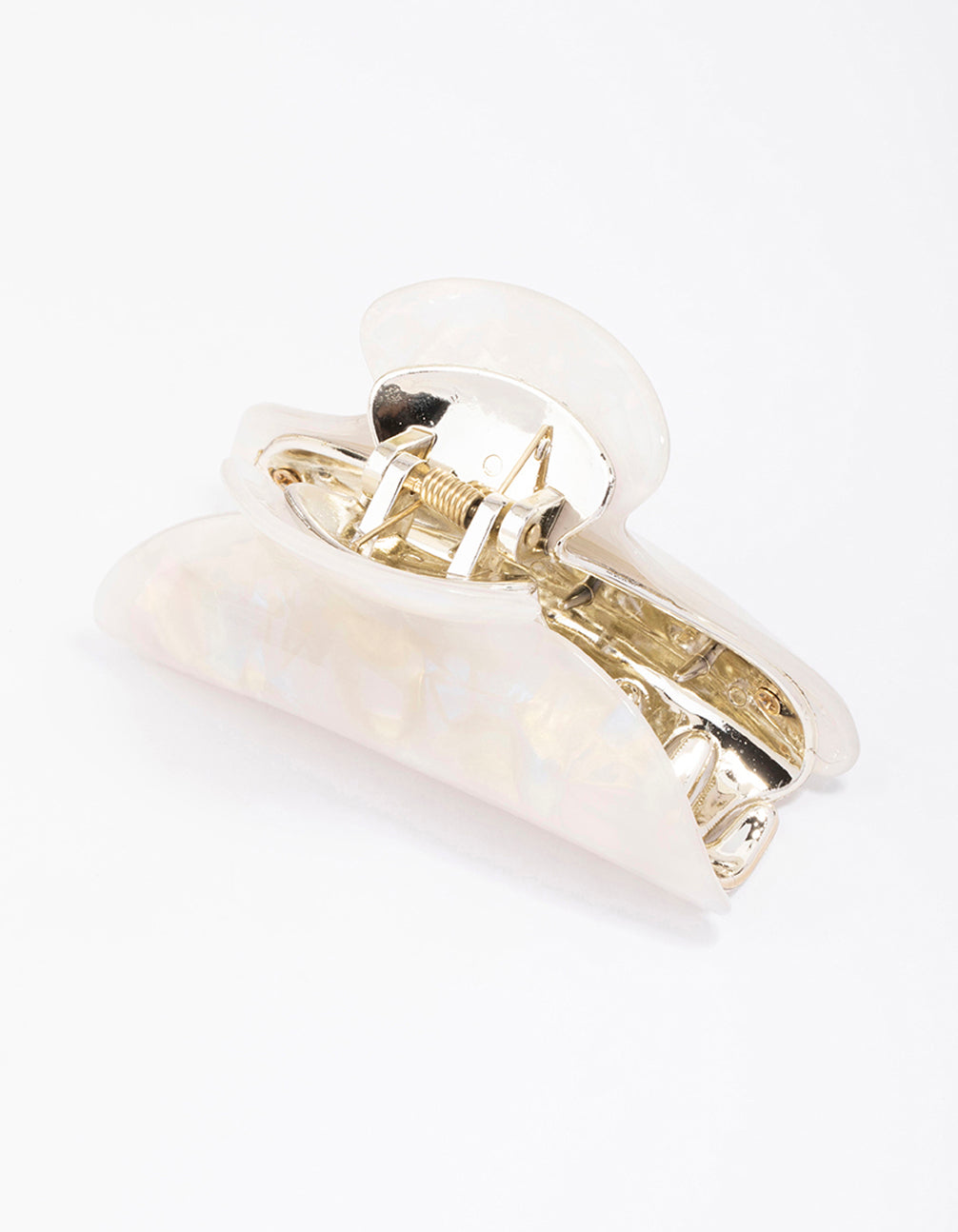 This simple hair claw is designed with a cream, marble finish for a modern and minimalist finish to your look.