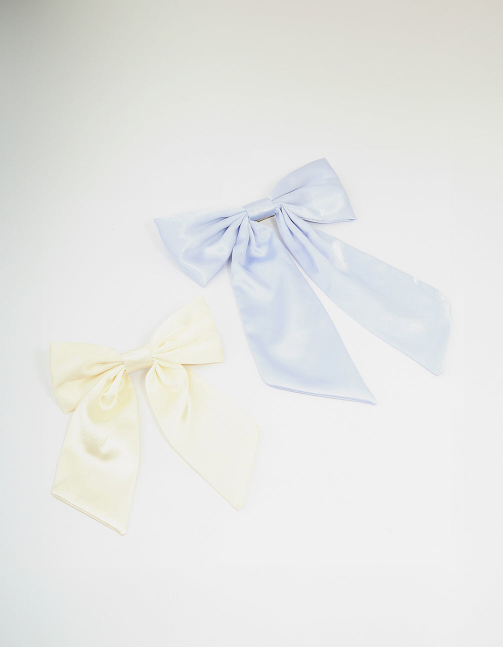 Cream & Blue Fabric Classic Bow Hair Clips 2-Pack