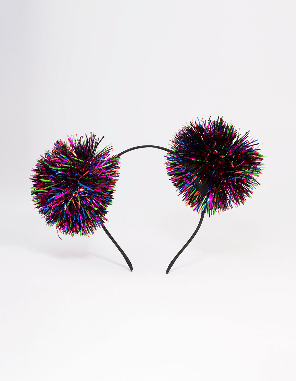 - This celebratory headband features two large pom poms adorned with rainbow confetti for an eye-catching finish to your NYE hairstyle.