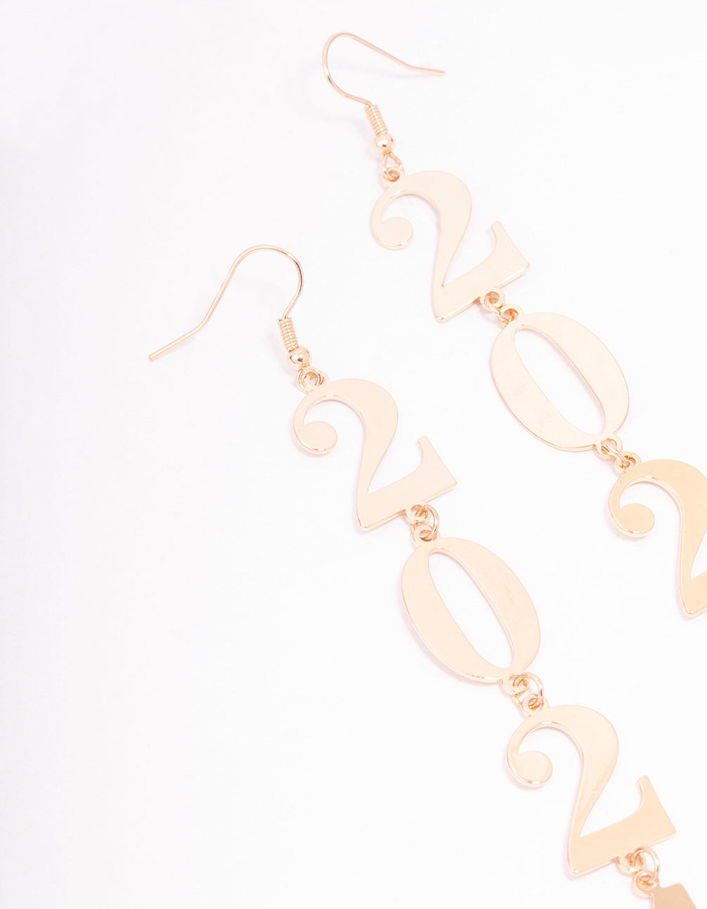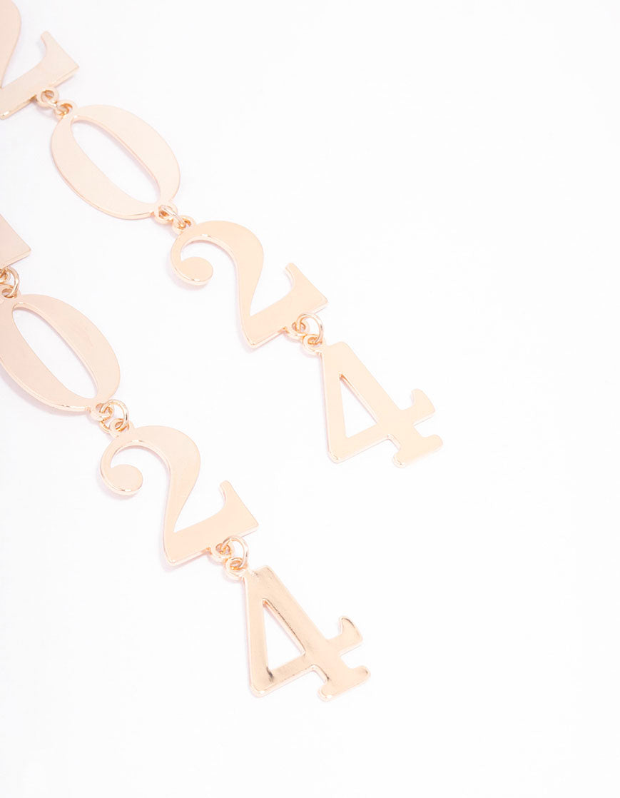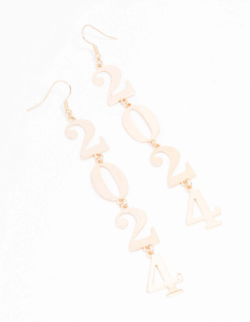 - These celebratory drop earrings feature the year 2024 in a gold, metallic finish, perfect for adding interest to your NYE outfit!