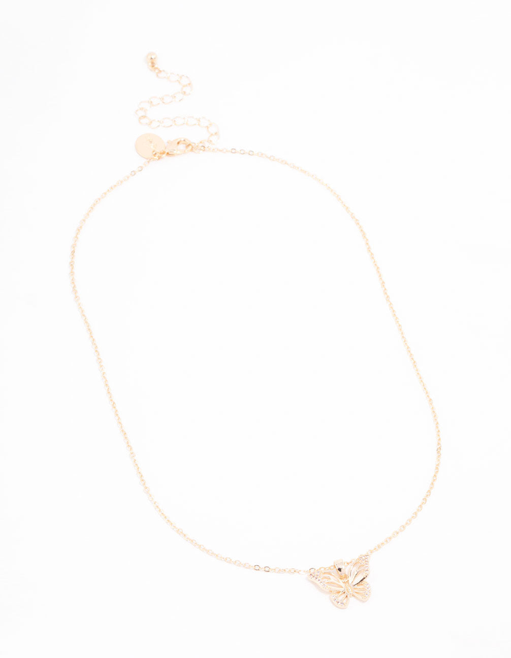 Gold Plated Cubic Zirconia Butterfly Necklace