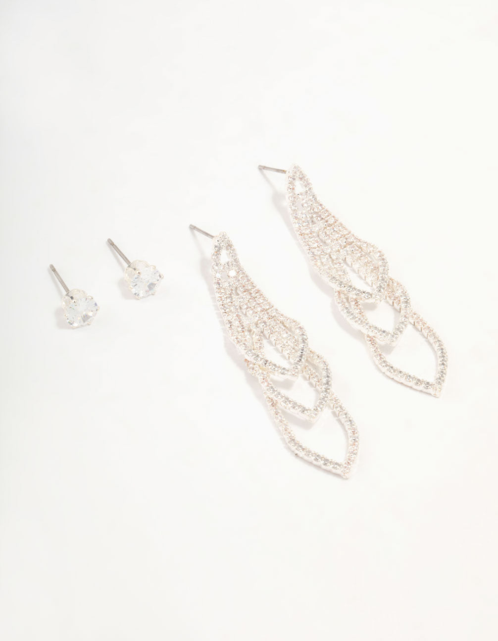 Silver Cubic Zirconia Cupchain Drop & Stud Silver Earrings Set