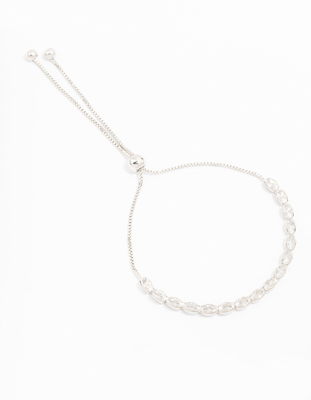 Add sparkle to your moments with cubic zirconia crystal jewelry. Rock this stunning silver-set toggle bracelet for an effortless and glamorous look. Adorned with dainty oval-shaped cubic zirconia crystals, it's perfect for adding elegance.