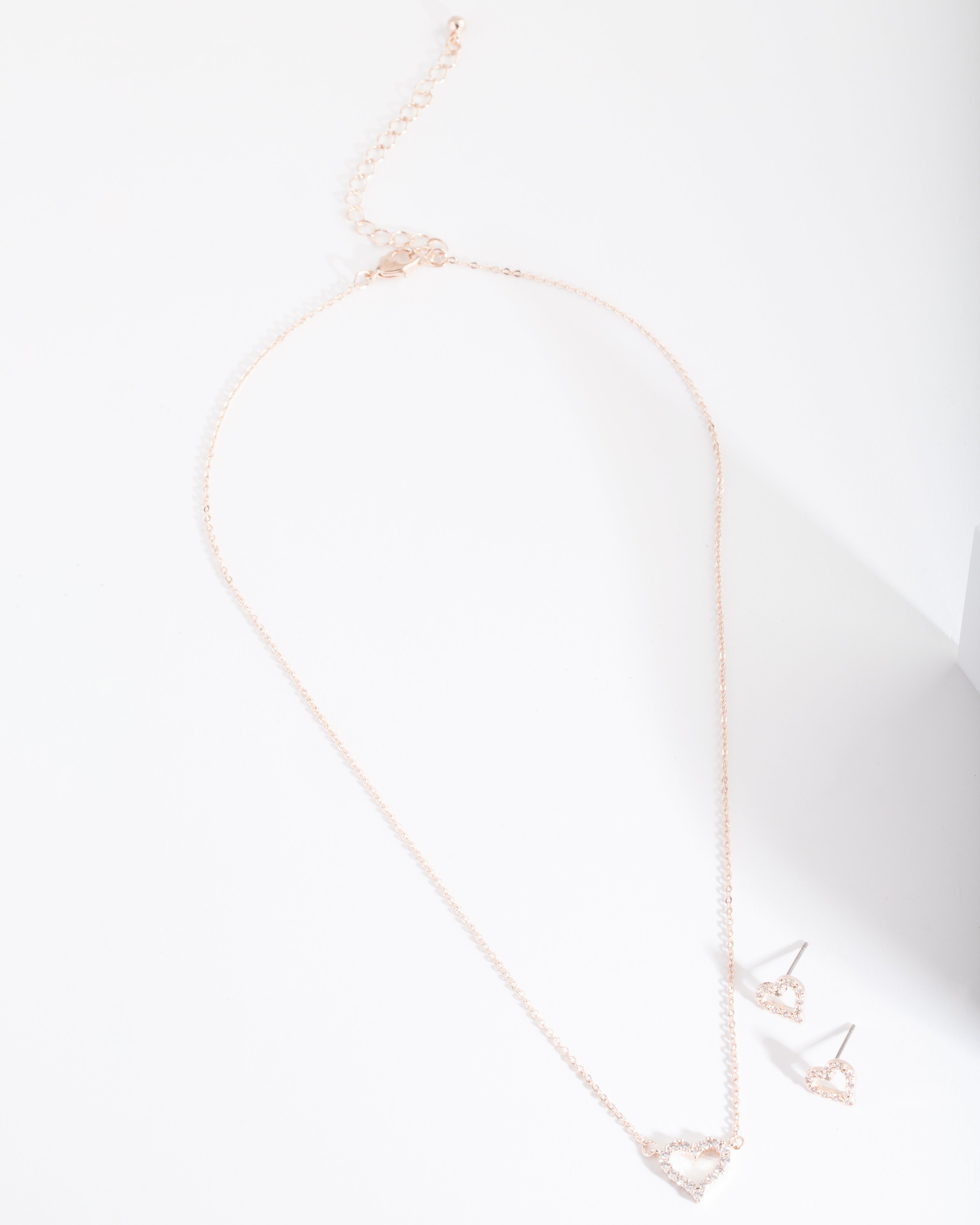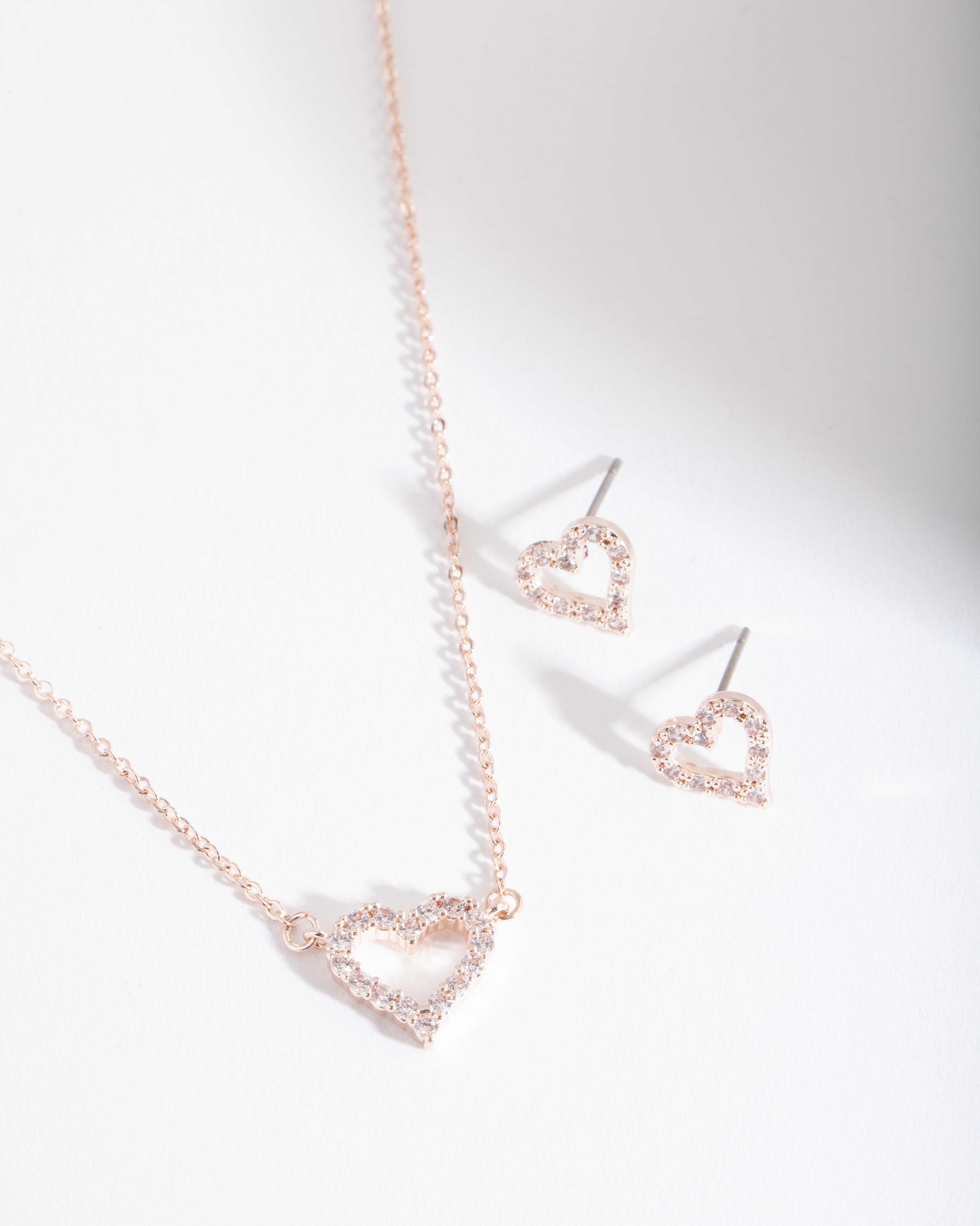Rose Gold Cubic Zirconia Heart Jewellery Set Rose Gold Cubic Zirconia Heart Jewellery Set Rose Gold Cubic Zirconia Heart Jewellery Set