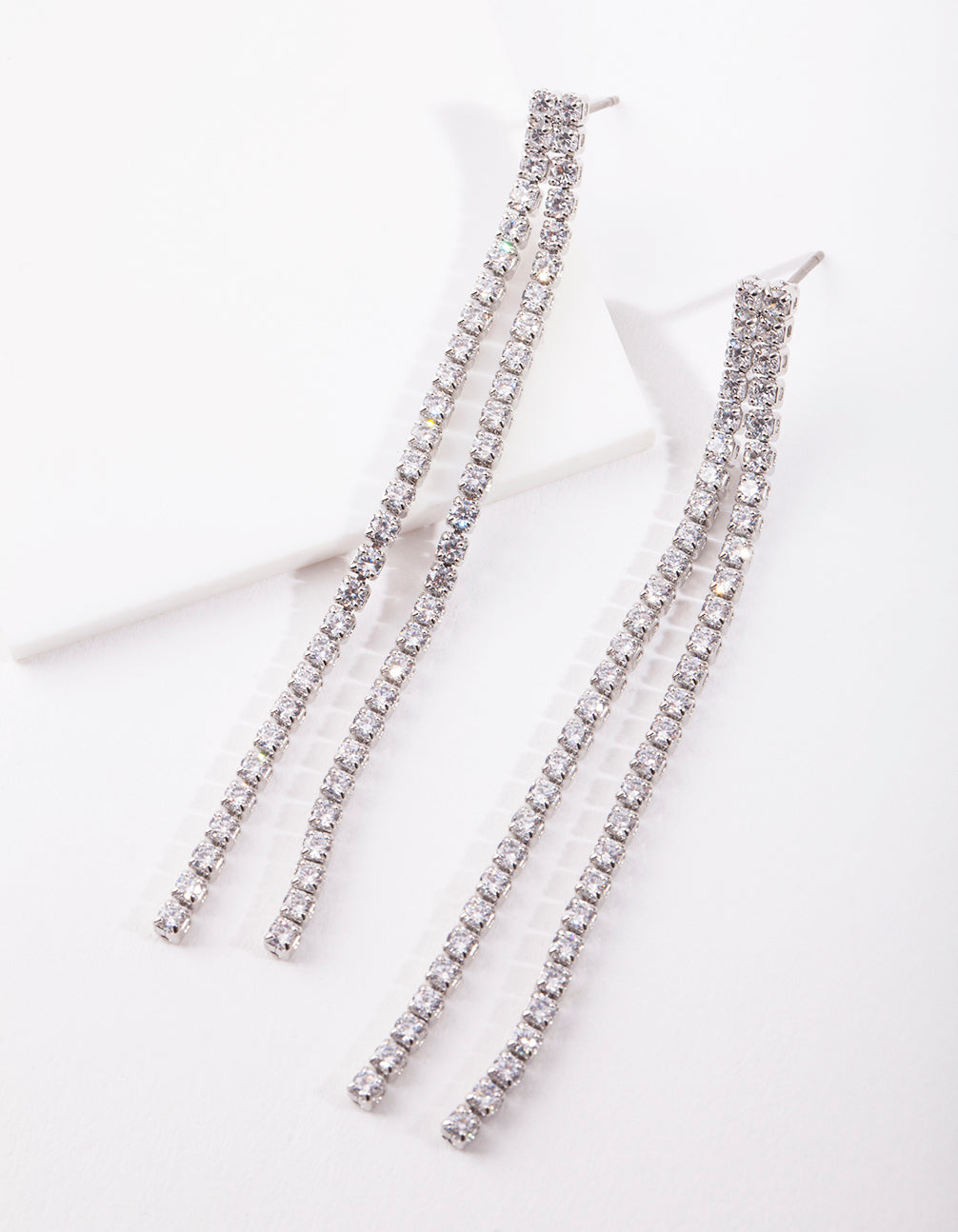 Add some extra sparkle to your collection with cubic zirconia embellished styles. This pair of earrings boast a double row design with cubic zirconia stone embellishments.