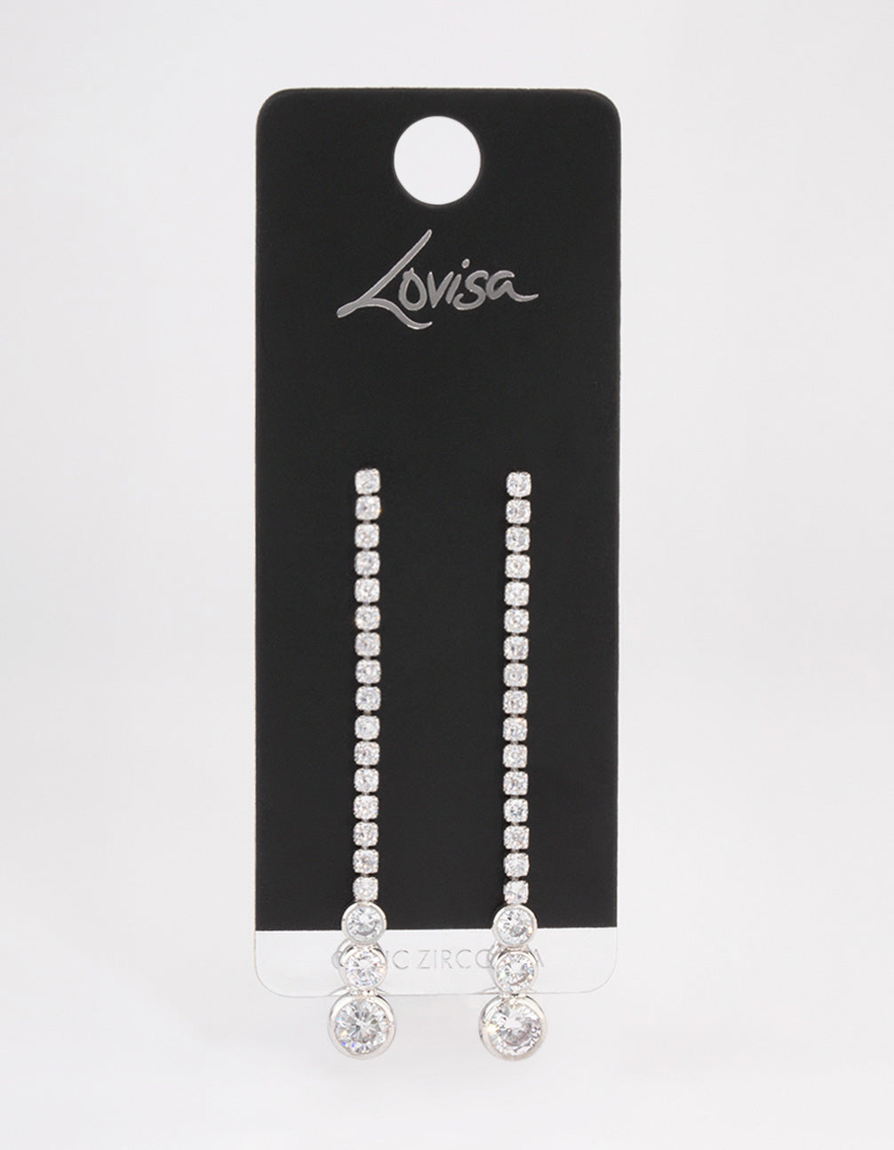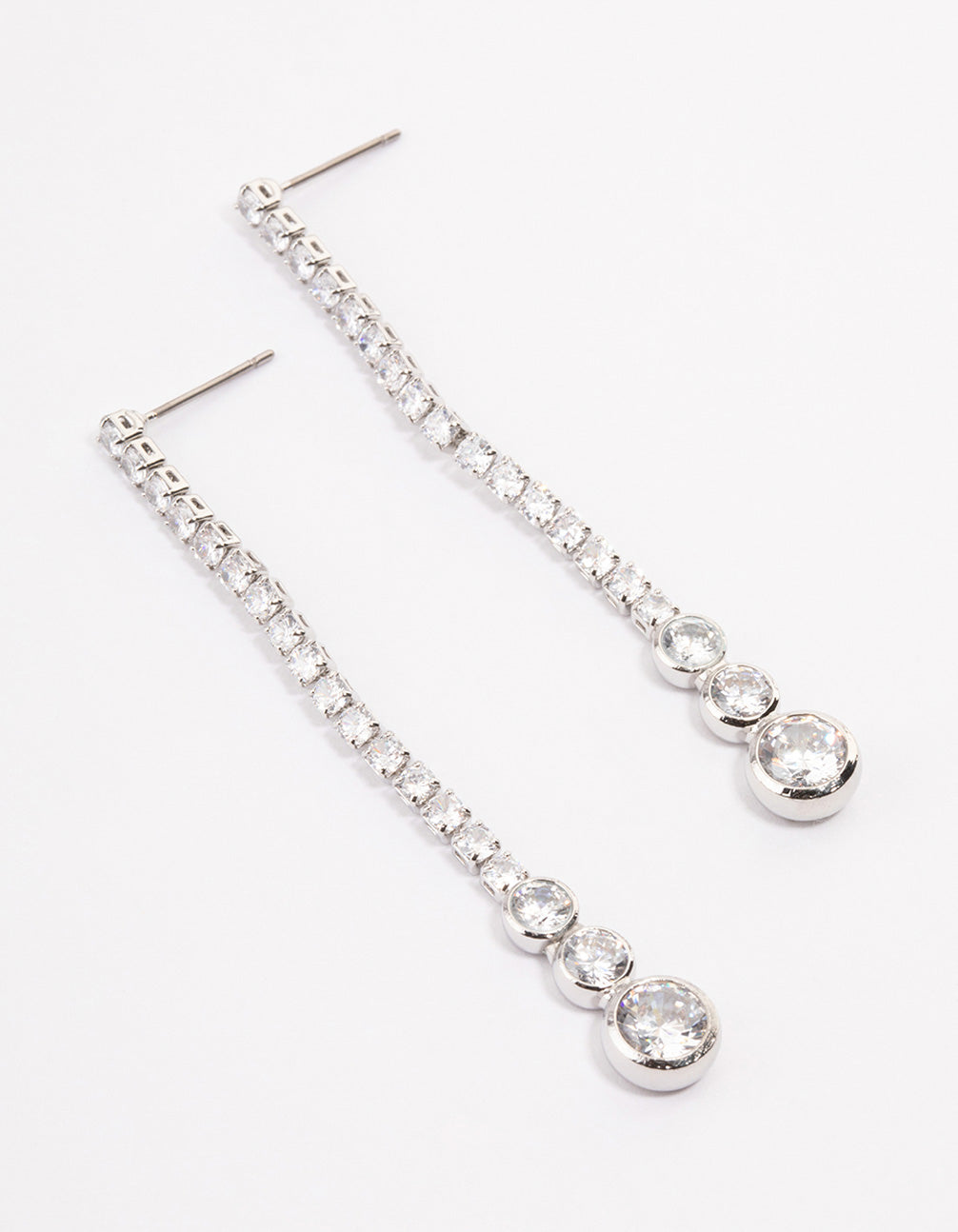 Style these silver-toned, triple stone cupchain drop earrings with a simple, diamante tennis bracelet for a timeless look.