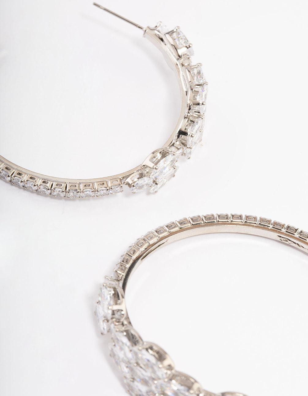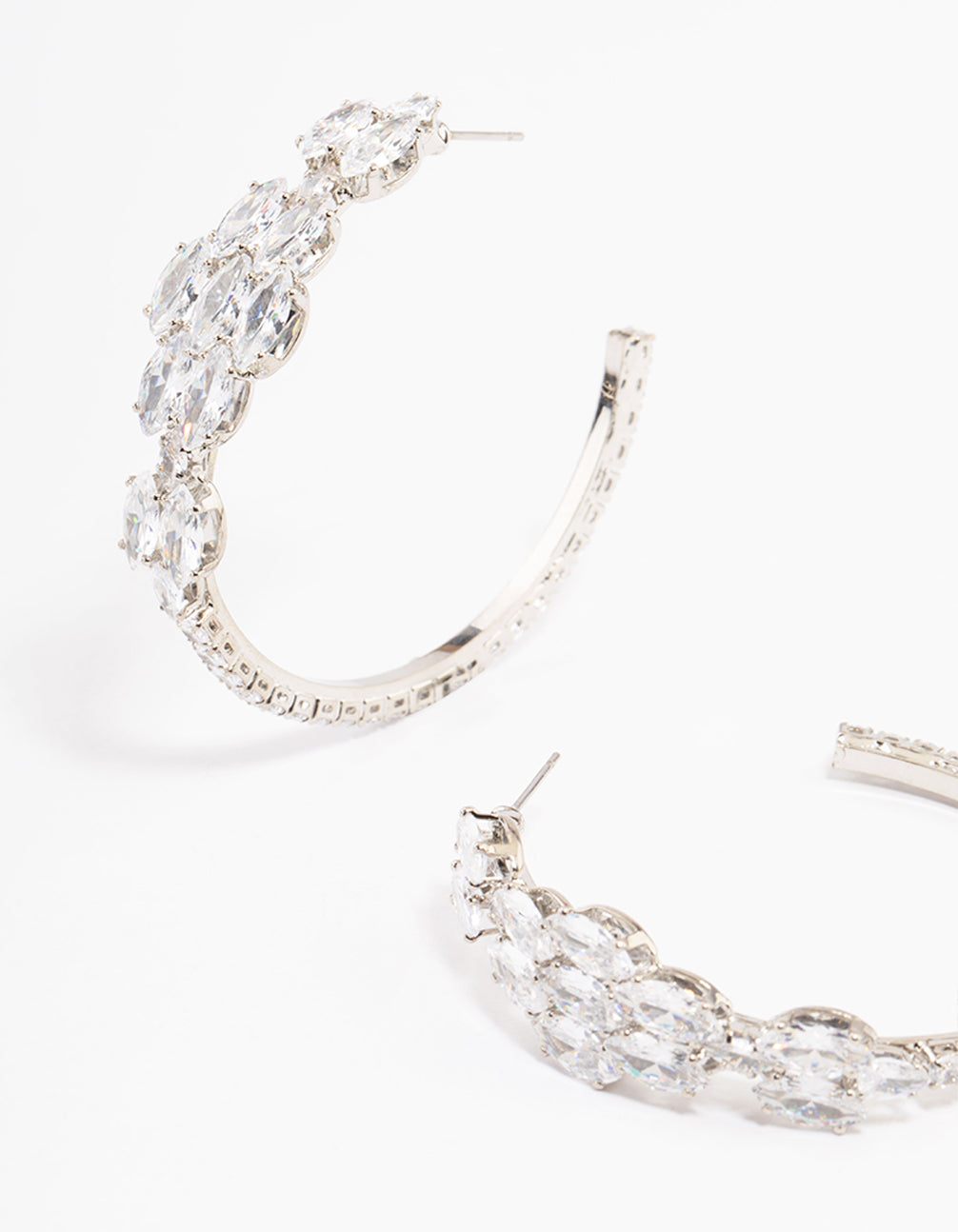 Standout in glamorous pieces from our premium Cubic Zirconia collection! This pair of silver-toned baguette statement hoops are designed with cubic zirconia encrusted crystals for added sparkle. Style yours with a simple diamante necklace for a touch of luxury.