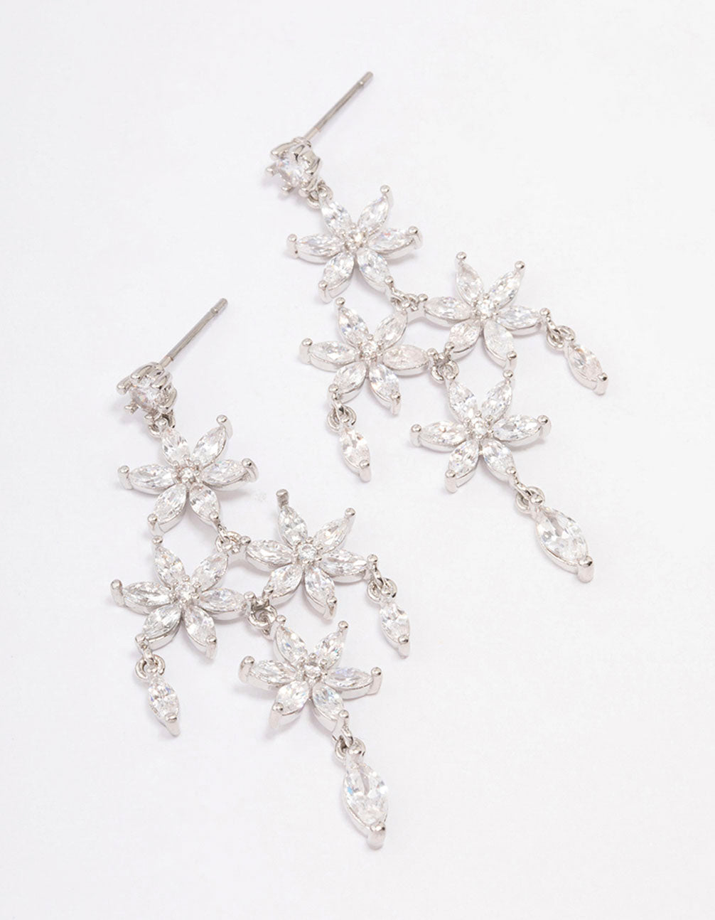 Silver Cubic Zirconia Flower Chandelier Drop Earrings