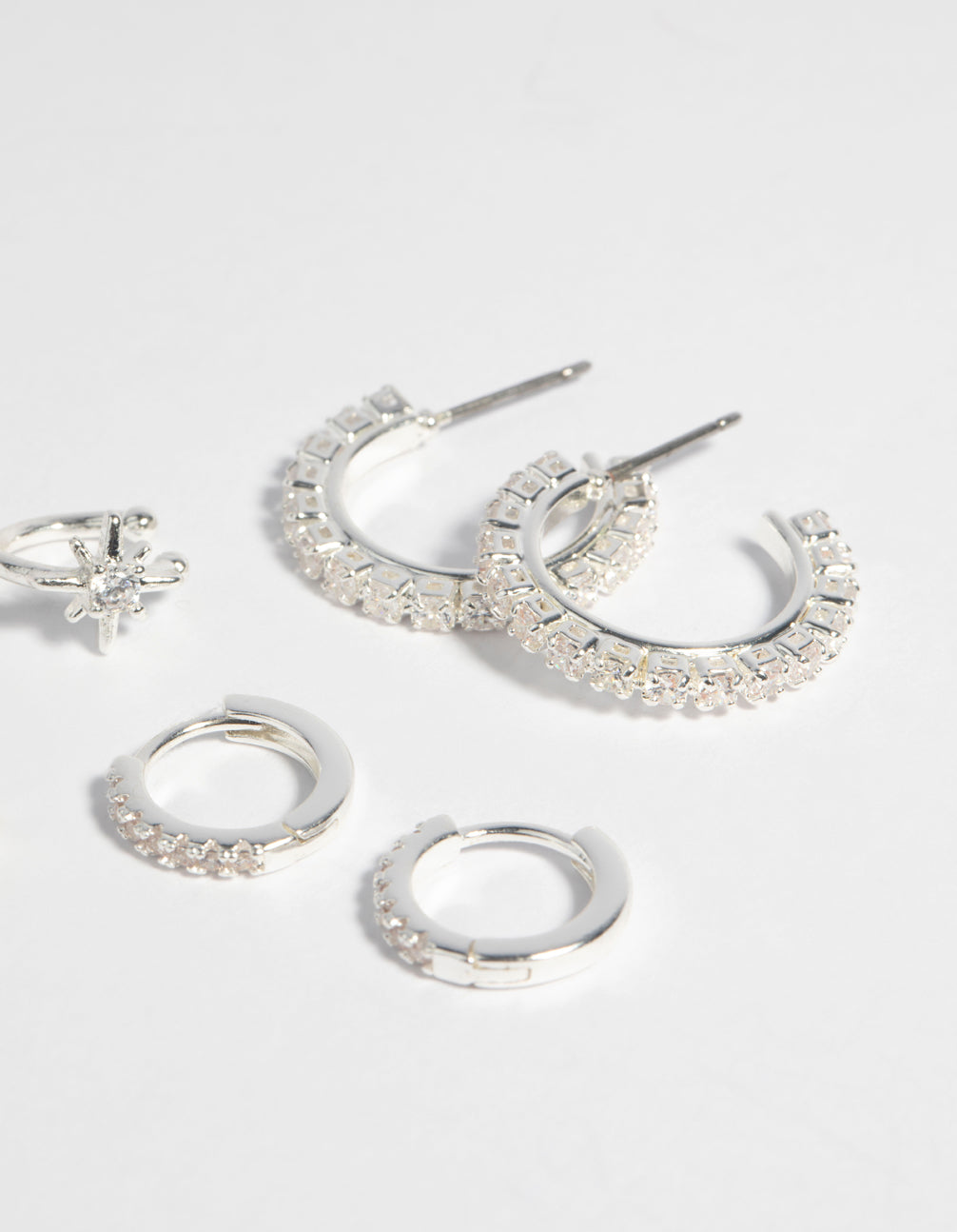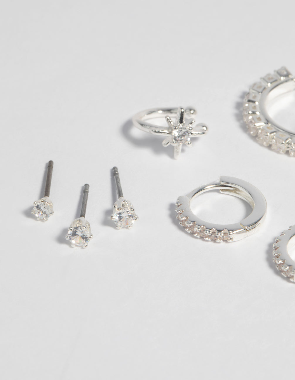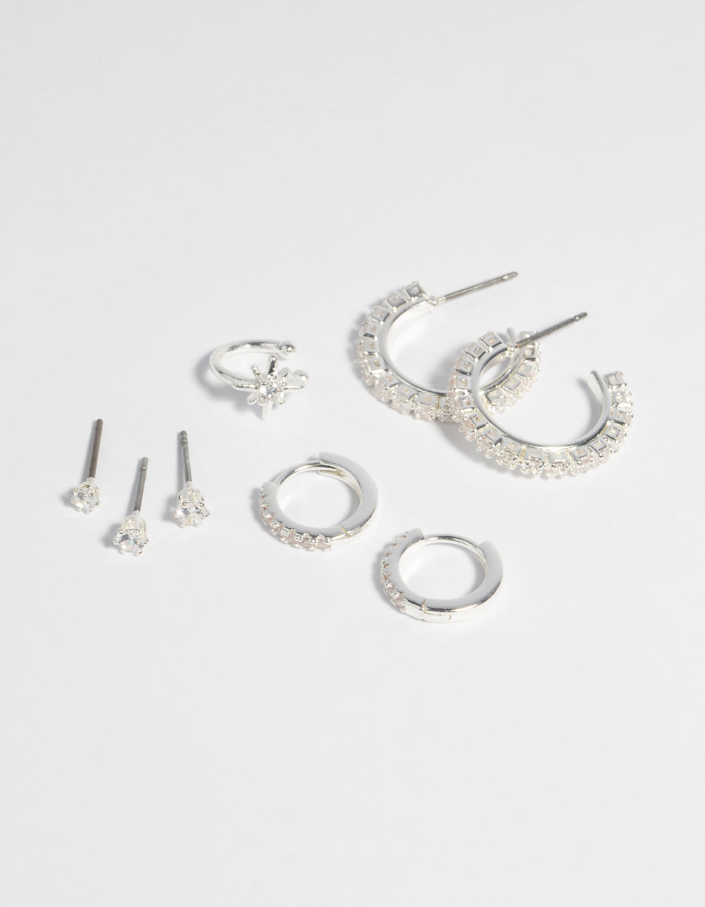 Silver Cubic Zirconia Classic Earring 7-Pack