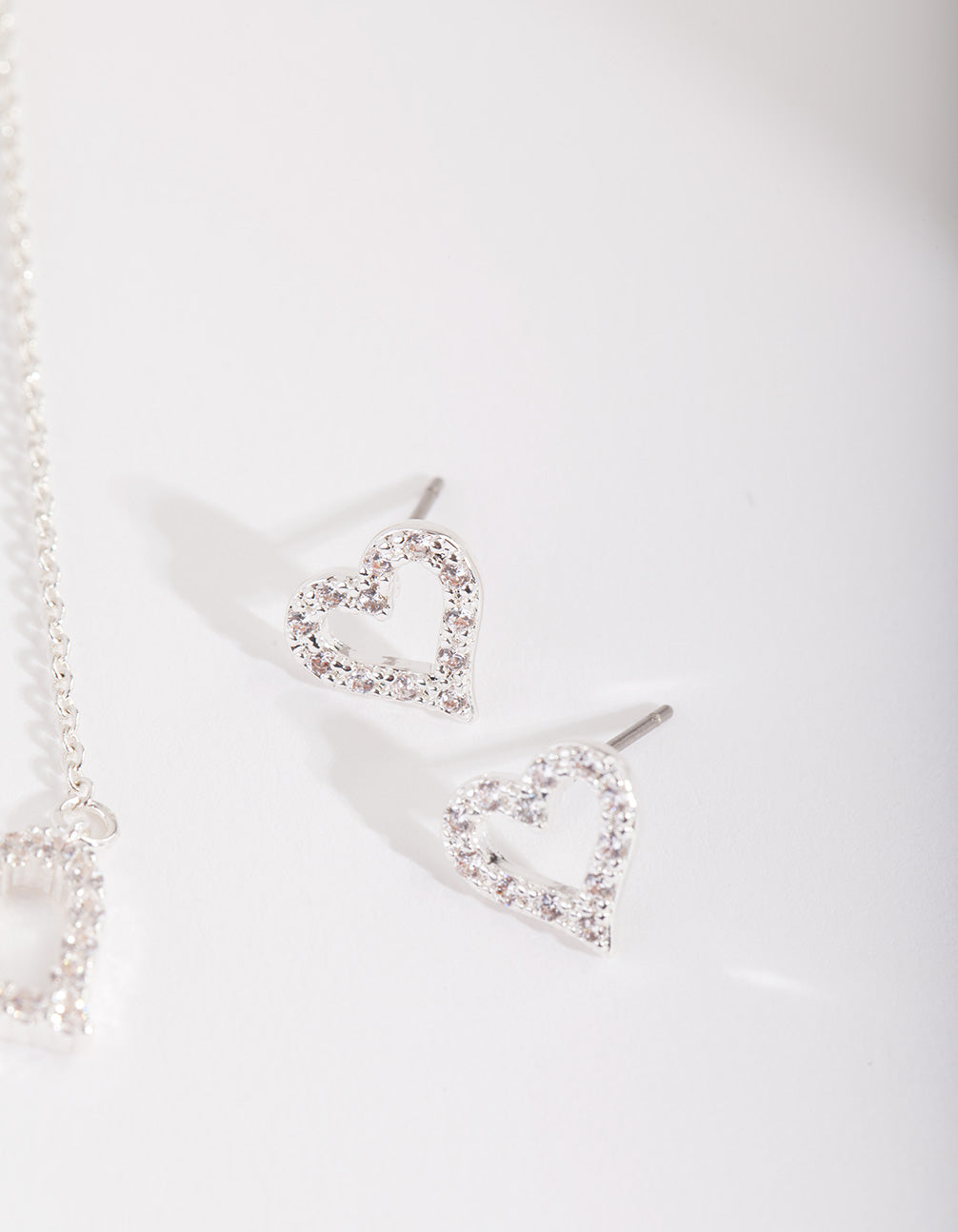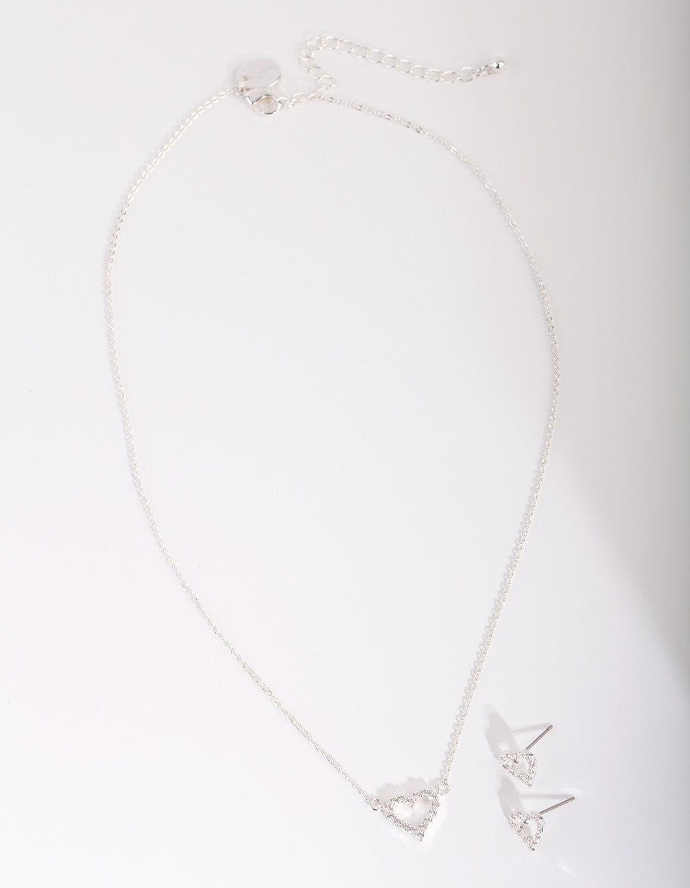 Silver Cubic Zirconia Heart Necklace & Earrings Set Silver Cubic Zirconia Heart Necklace & Earrings Set Silver Cubic Zirconia Heart Necklace & Earrings Set
