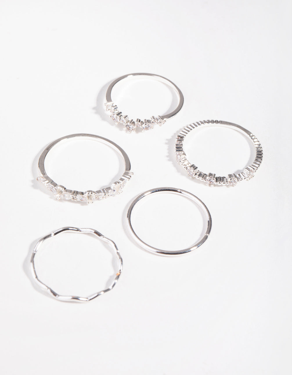 Stack up the style with this Silver Delicate Bands Rings 5-Pack! These minimalist silver beauties are perfect for everyday wear or adding a touch of shine to your evening look. With their sleek and dainty design, these bands are ideal for mixing, matching, and stacking. Pair them with casual denim or a chic dress to complete your vibe.