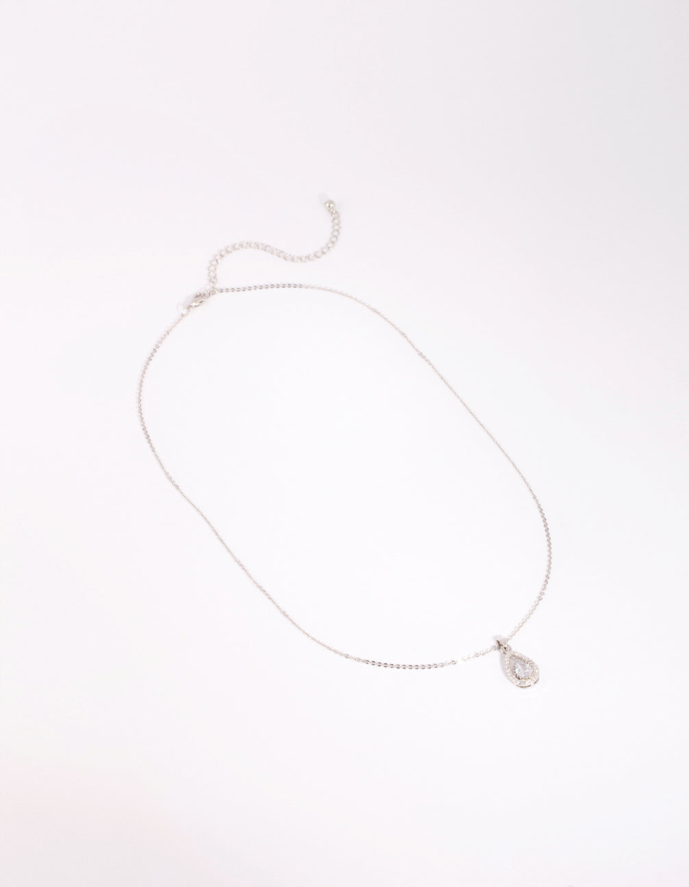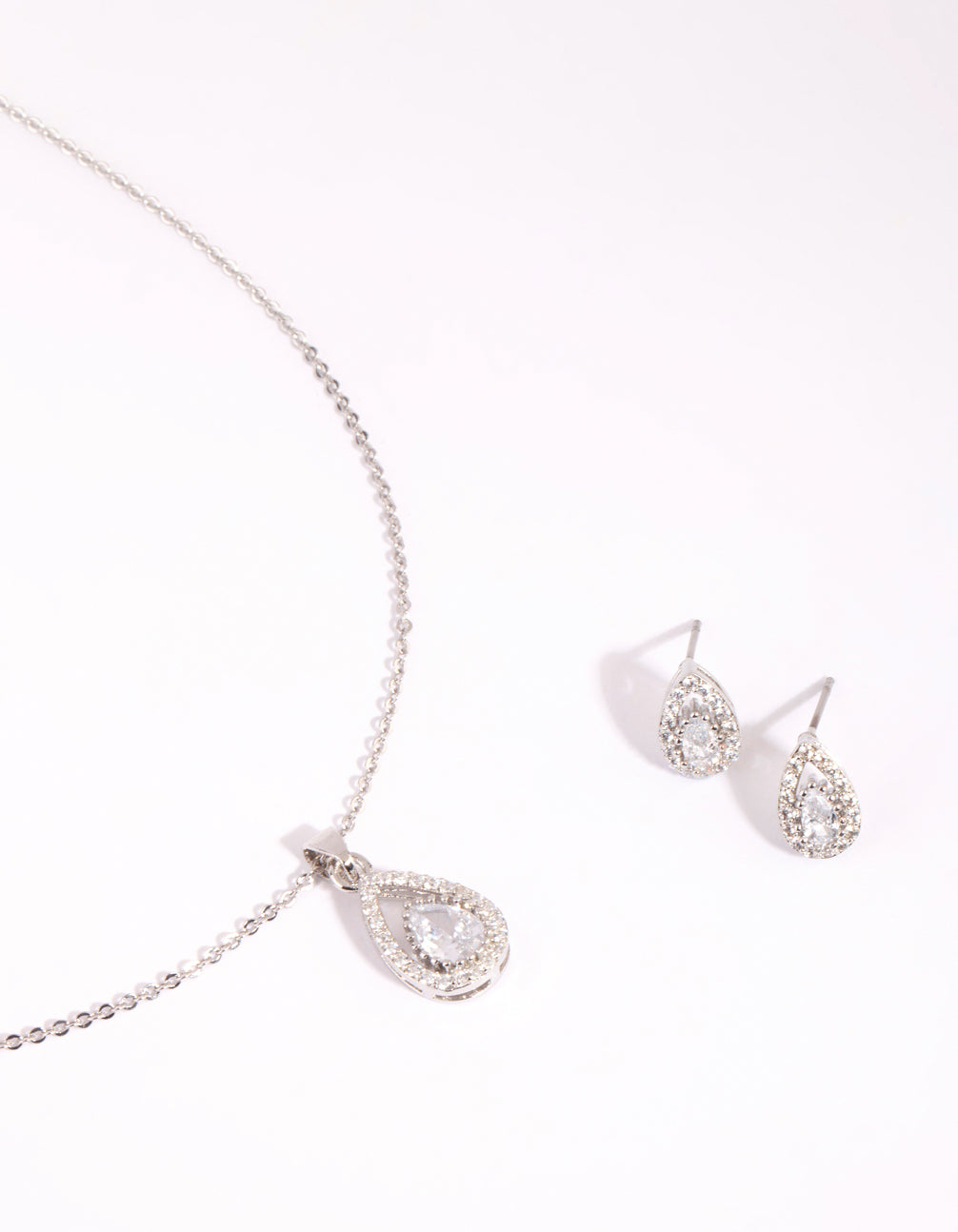 Silver Cubic Zirconia Teardrop Necklace & Earrings Set
