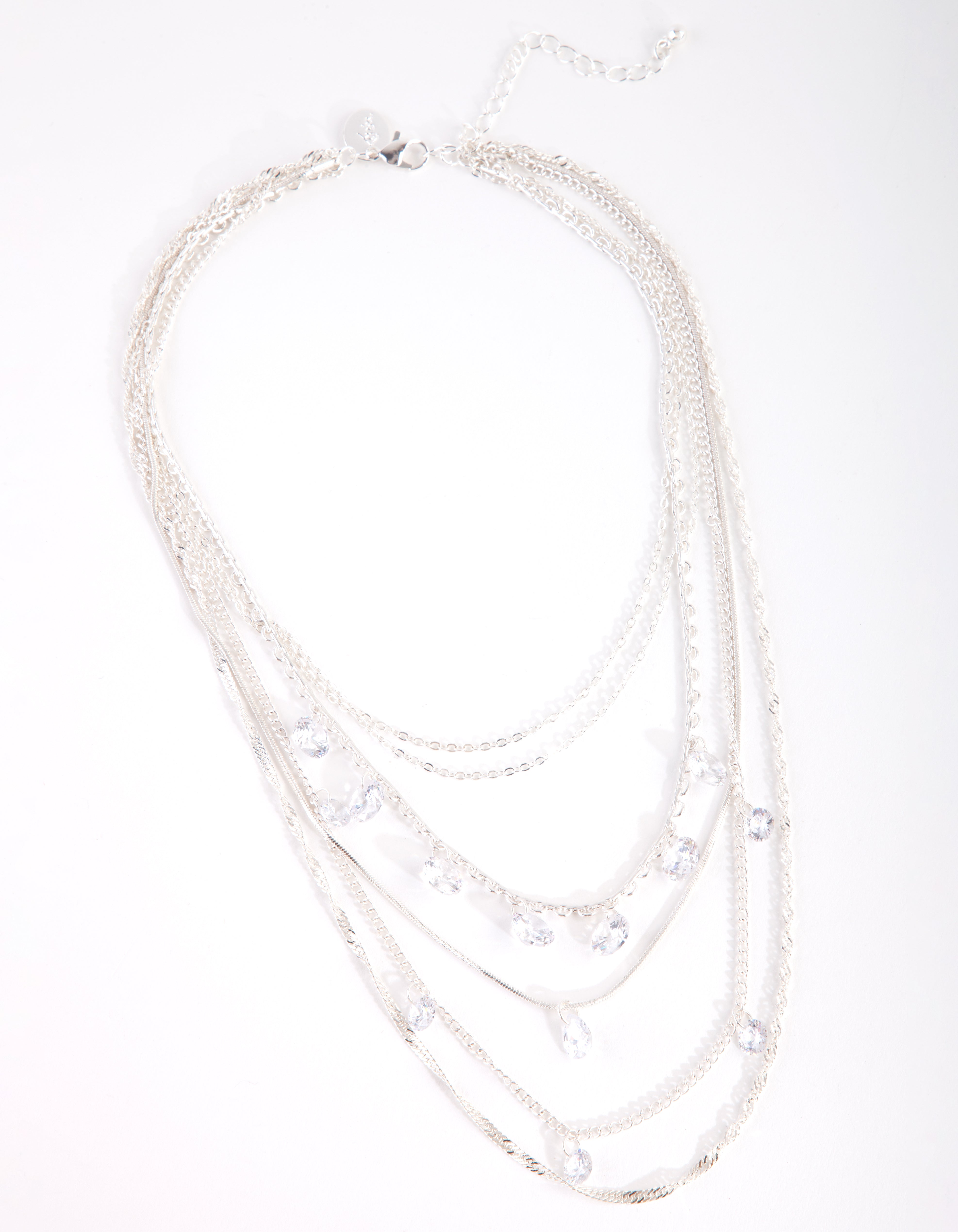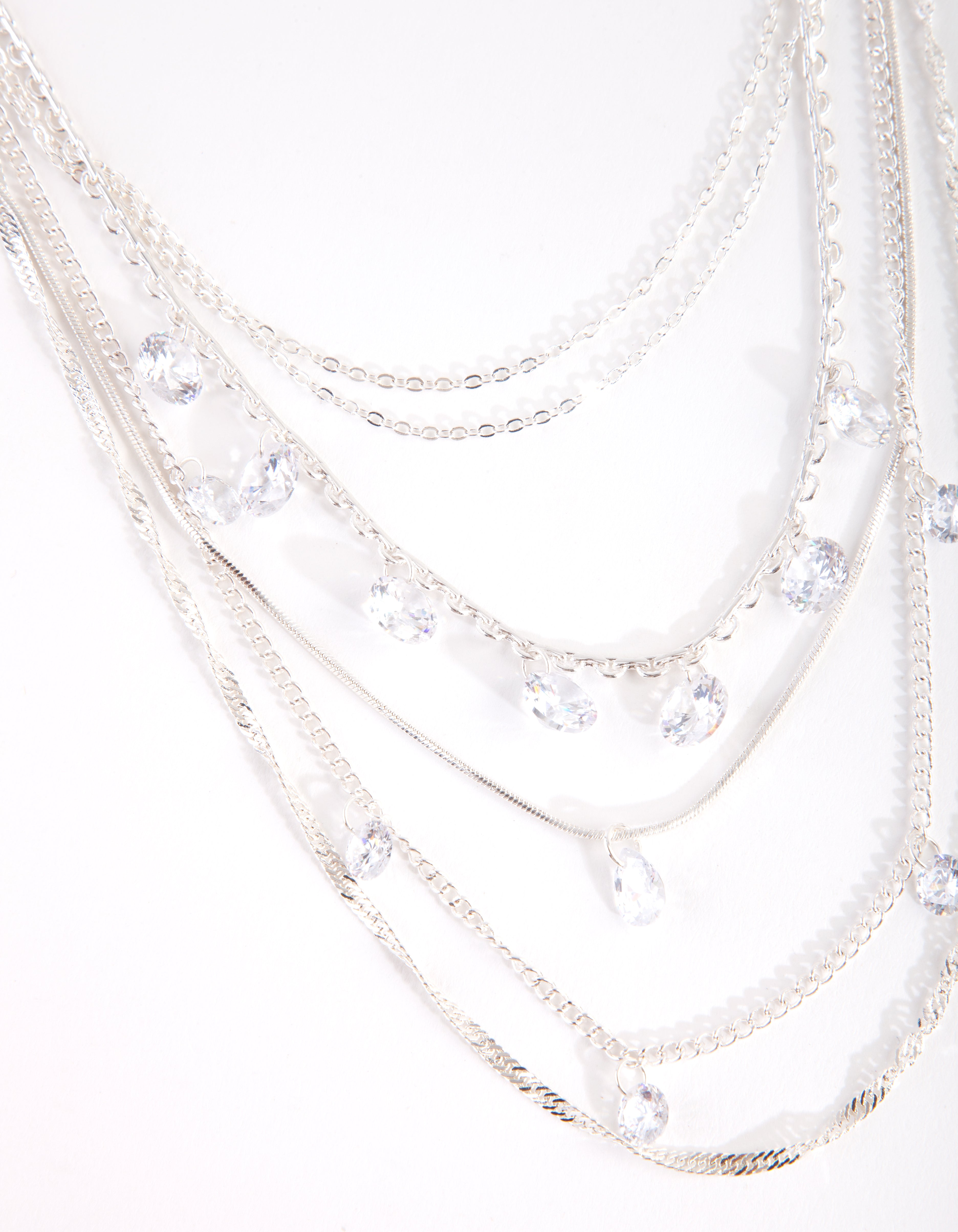 Shine bright with cubic zirconias and add some glamour to your look. This dazzling silver-tone multi-layered necklace features fine chains adorned with cubic zirconia diamantes.