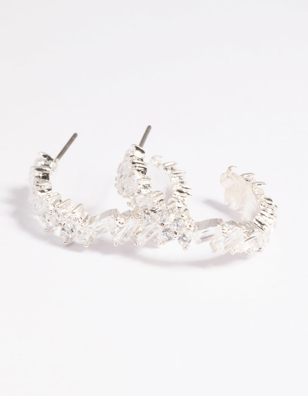 Silver Cubic Zirconia Baguette Hoop Earrings