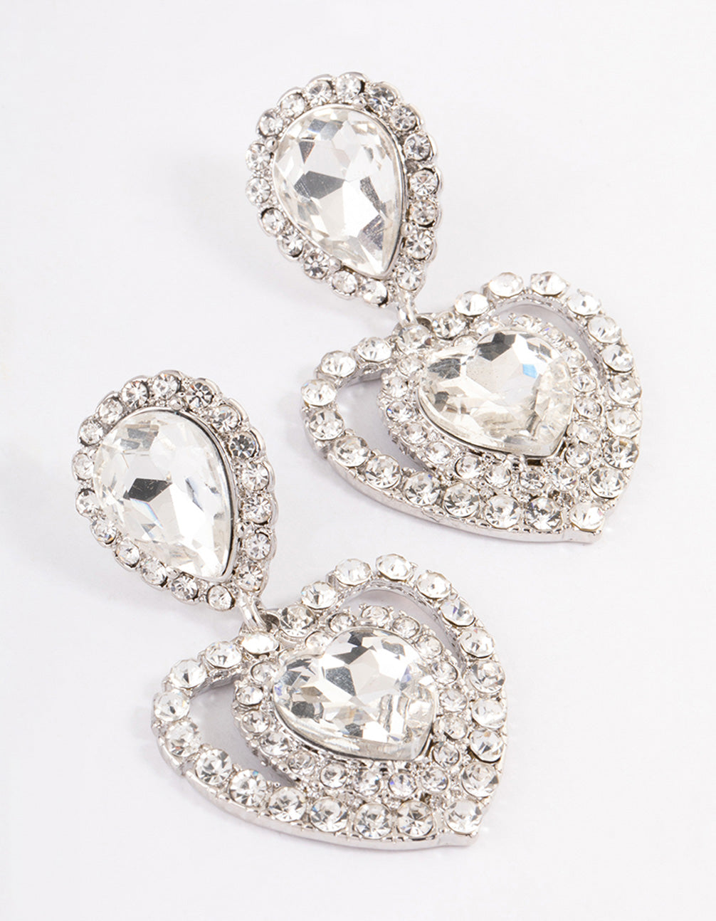 - These drop earrings feature a stunning, silver-toned setting and heart design for a lovable look.