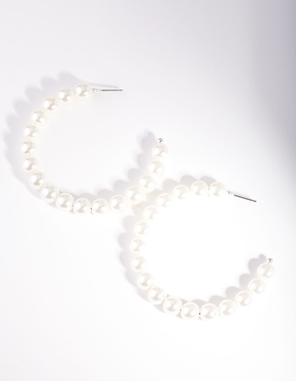 Silver Pearl Bead Hoop Earring Silver Pearl Bead Hoop Earring Silver Pearl Bead Hoop Earring
