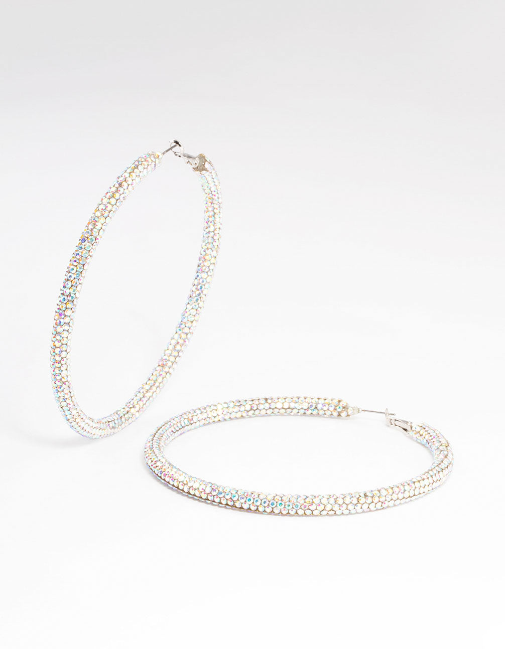 Silver 85mm Diamante Crust Hoop Earrings