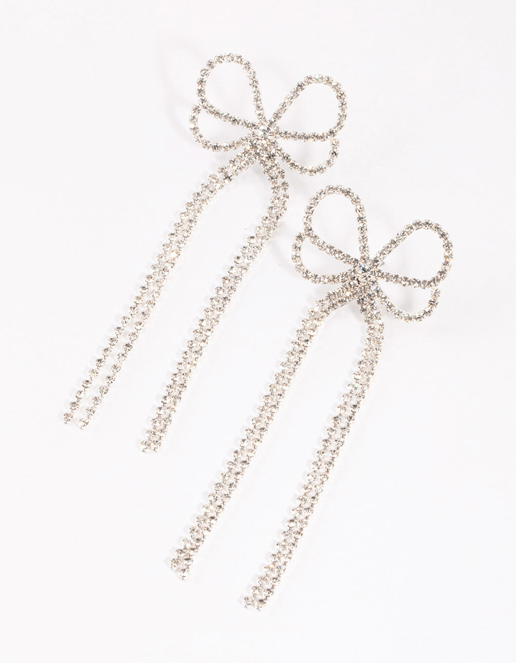 - These drop earrings feature a stunning silver setting and large, sparkly bow design - perfect for embodying the 'it-girl' look.