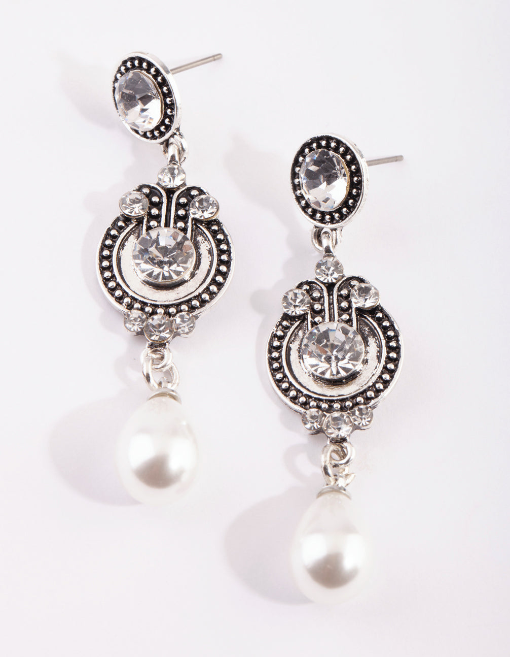 Silver Diamante & Pearl Drop Earrings