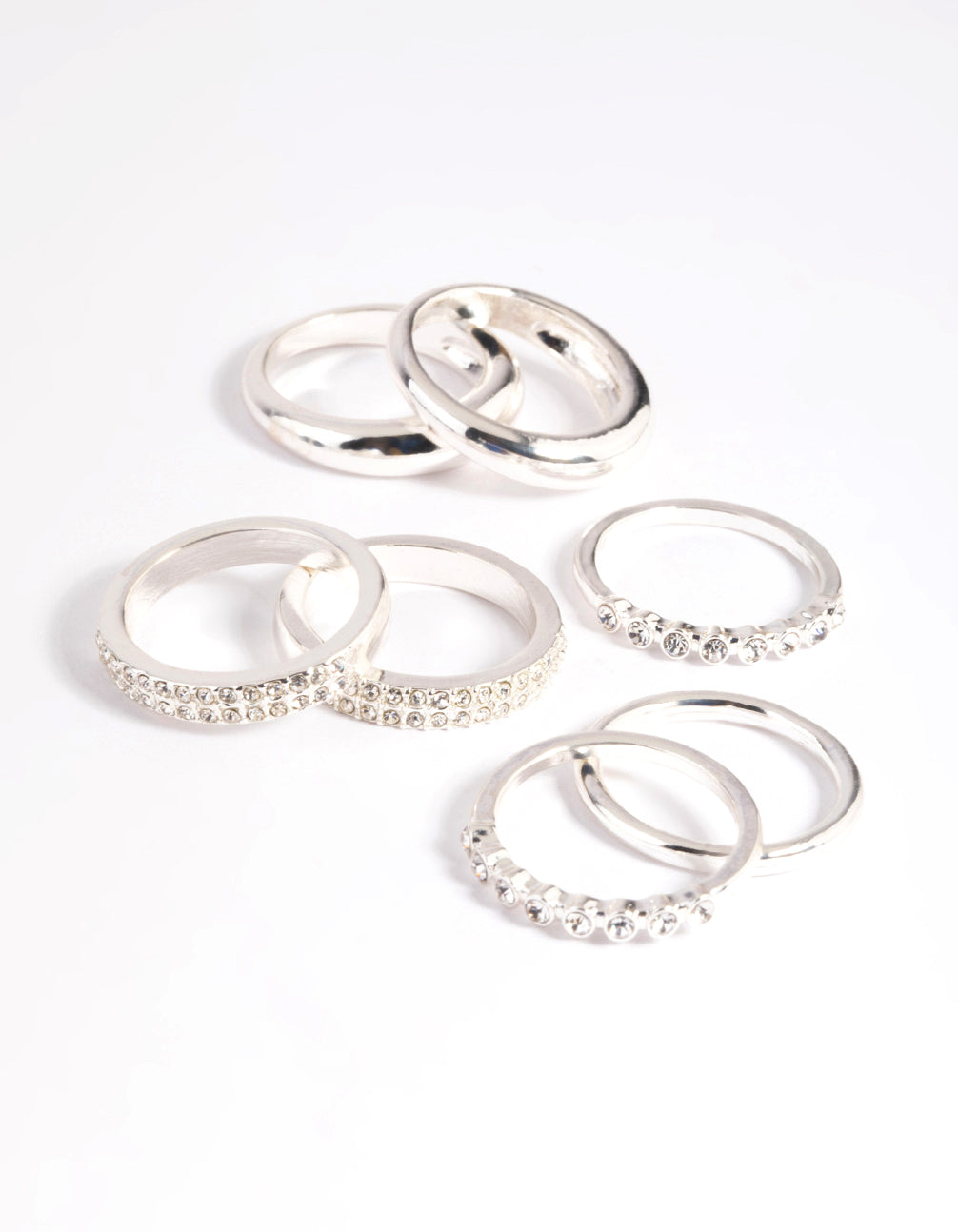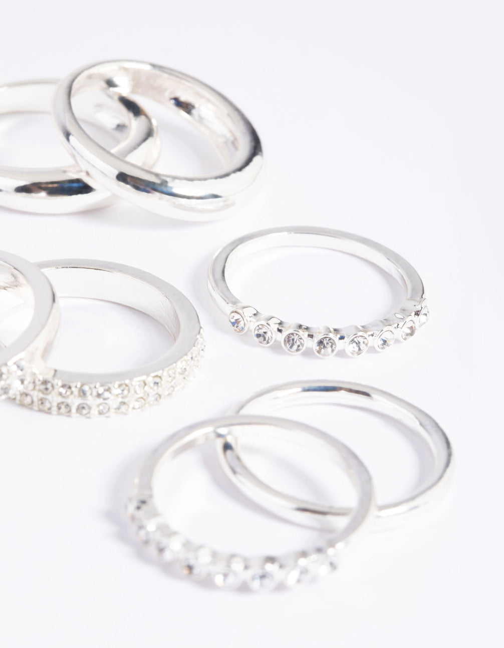 Dazzle with diamantes! This pretty ring pack boasts a variety of designs which are perfect for layering. They feature diamante designs for extra sparkle. Ring it on!