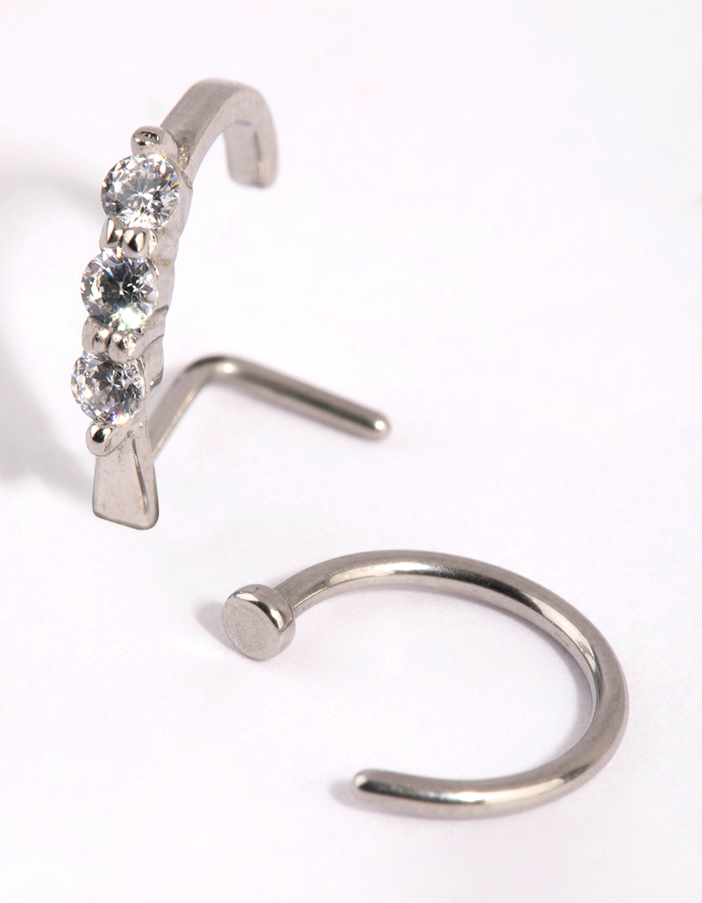 Lovisa body jewellery is made from surgical steel, making it the perfect option for everyday wear. This collection has been made with piercings in mind and features both trend-led and classic styles that you can swap out to suit any occasion. This nose ring 2 pack features a plain hoop and a curved post hoop with a trio of fine diamantes for a touch of glam. Mix and match your nose rings to coordinate with cubic zirconia accessories for a fashion-forward look!