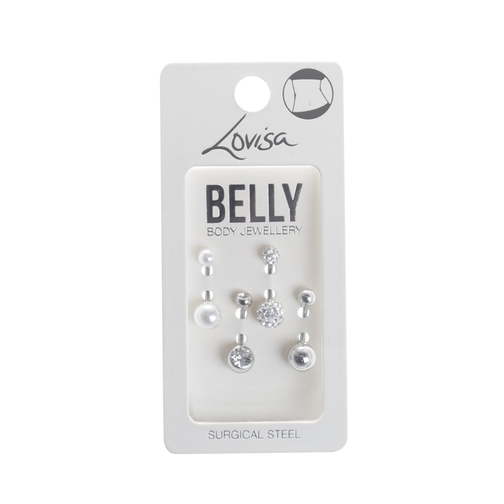 Surgical Steel Pave & Diamante Belly Bar 4-Pack