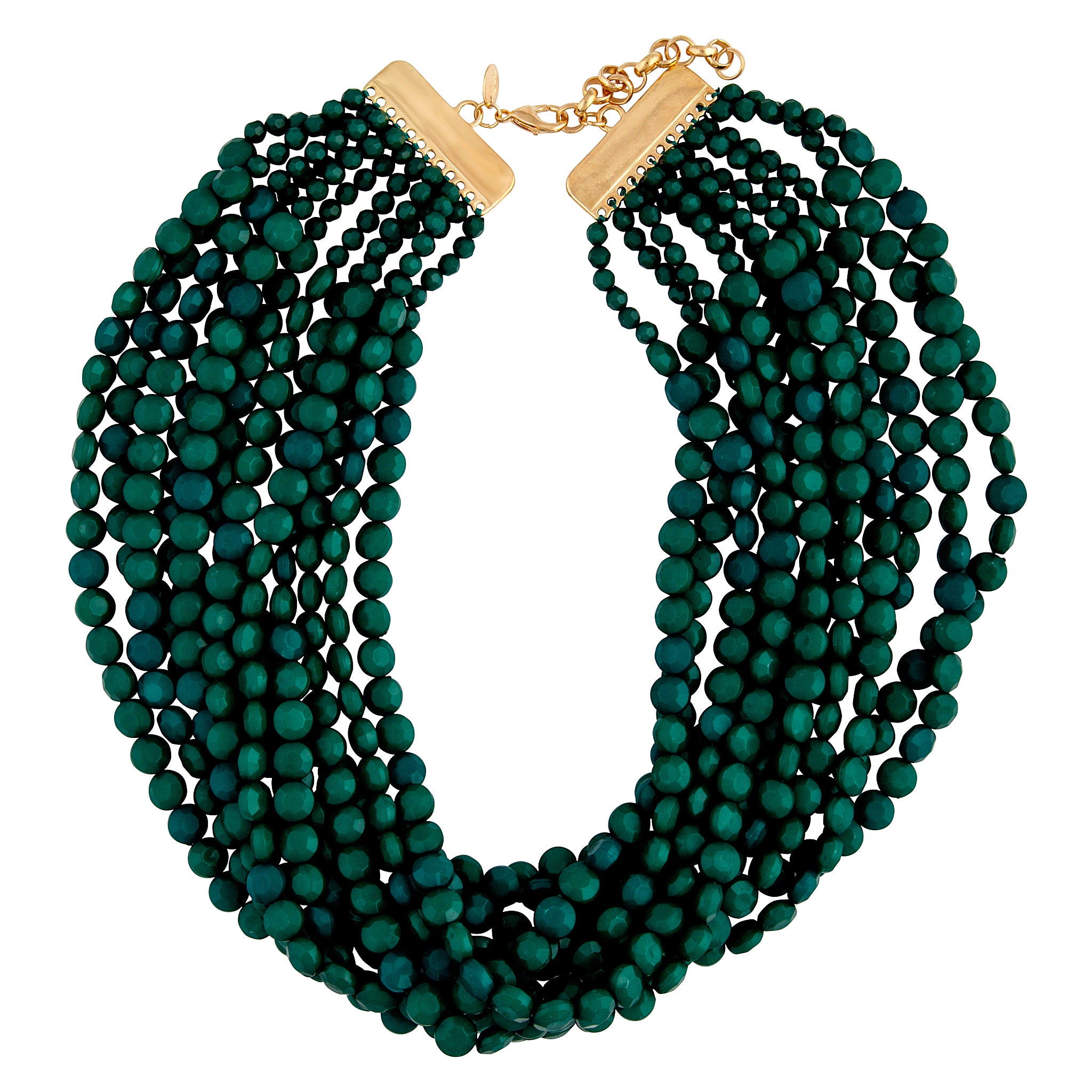 Make a statement in this green bead necklace with 12 layers!