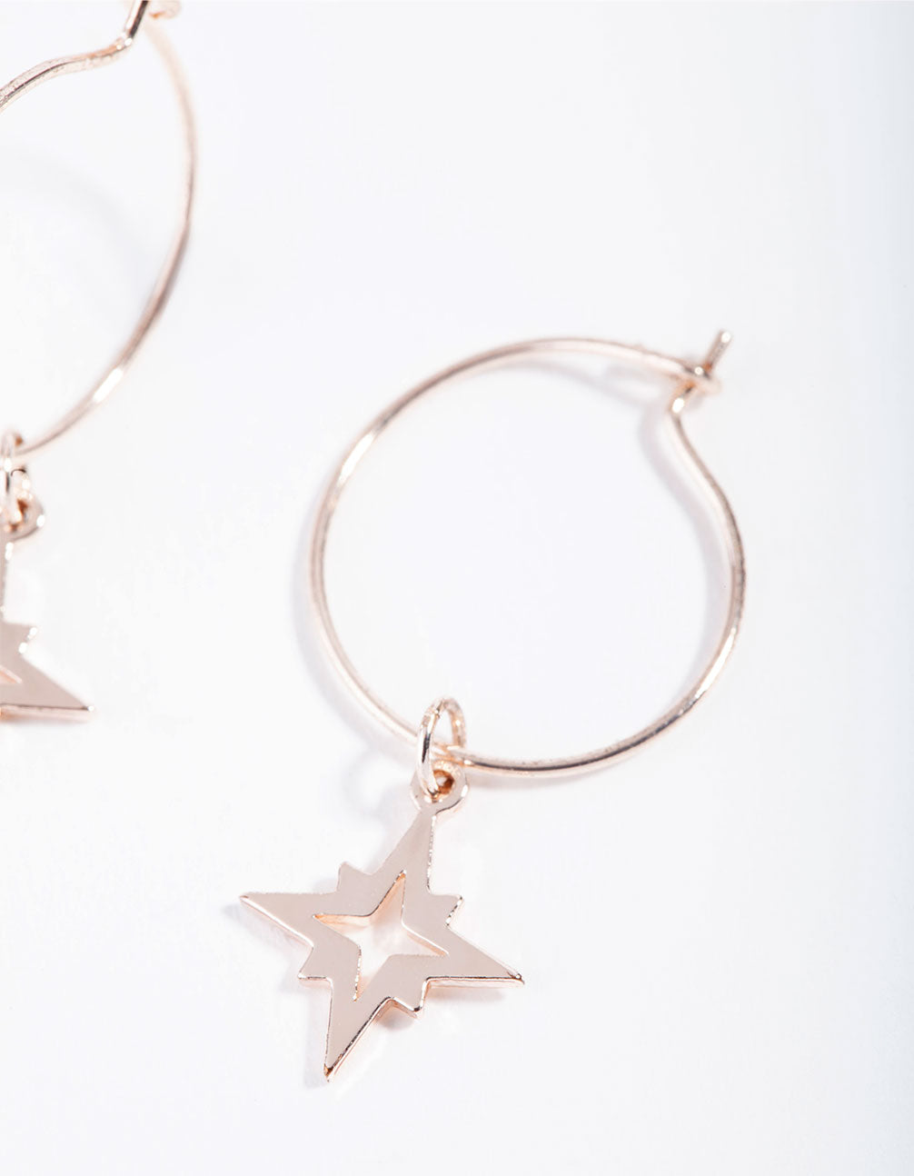 Rose Gold Fine Star Charm Hoop Earrings