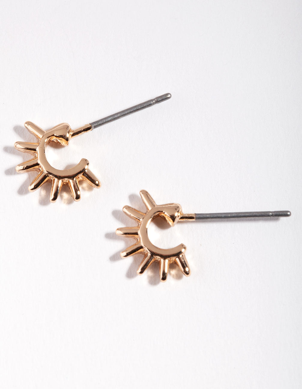 Update your collection with a pair of fashion earrings. This pair features a simple mini spike hoop design in a gold tone and is perfect on its own or stacked with others.