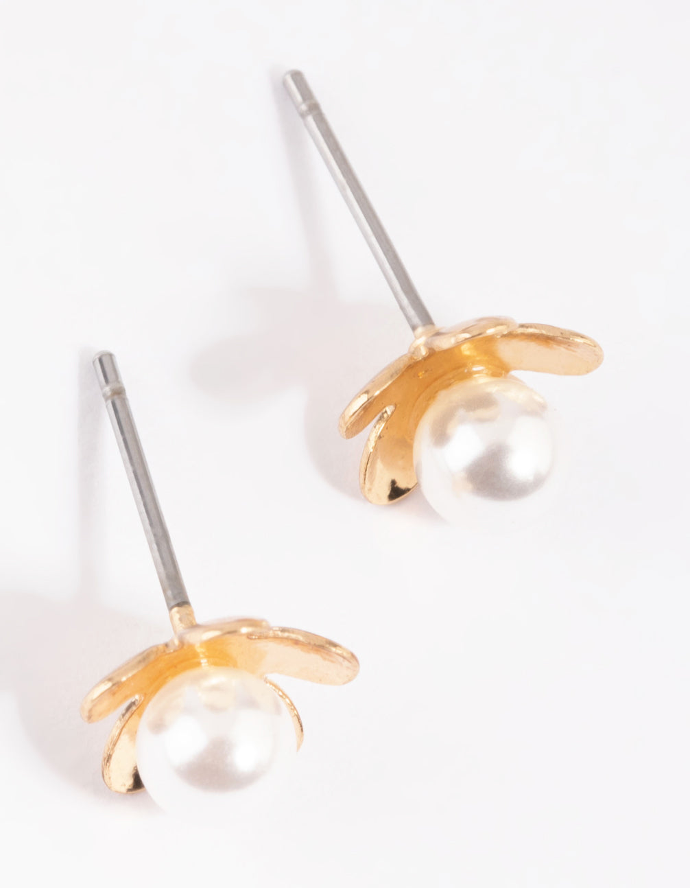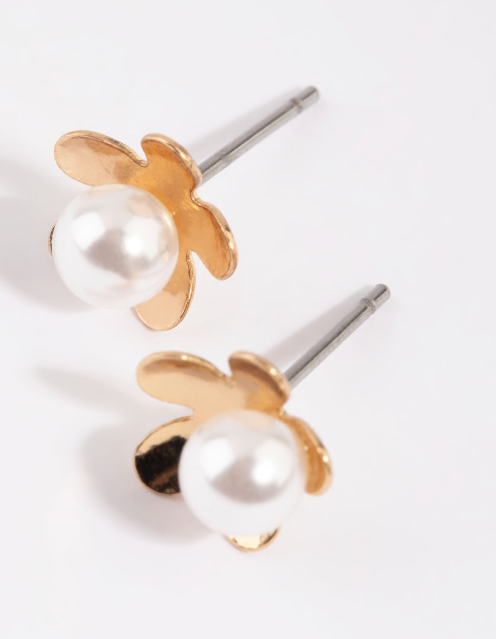 Gold Pearl & Flower Stud Earrings Gold Pearl & Flower Stud Earrings Gold Pearl & Flower Stud Earrings