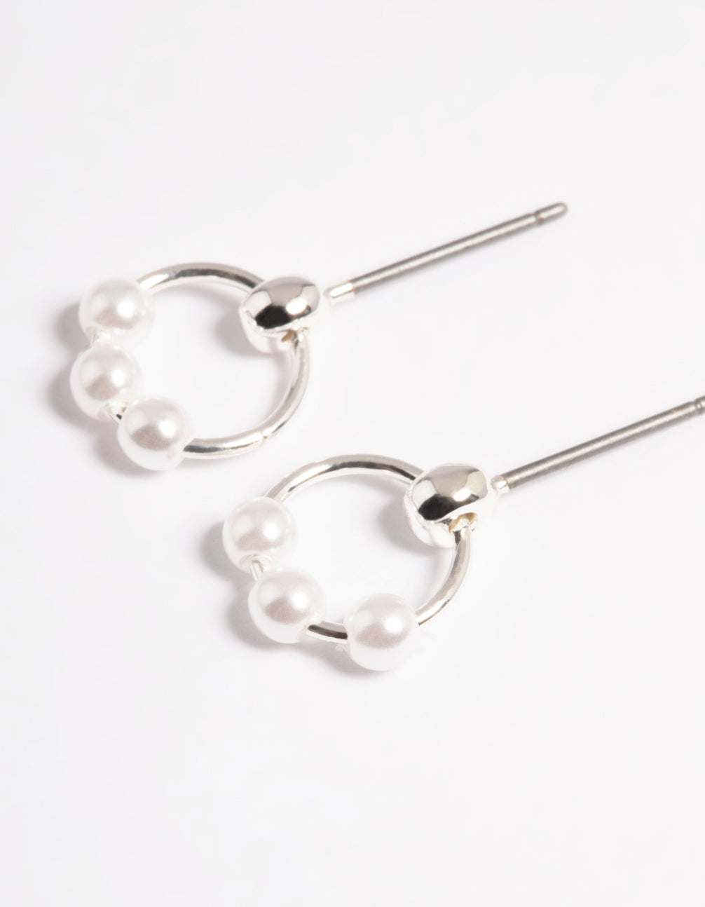 Silver Pearl Circle Stud Earrings